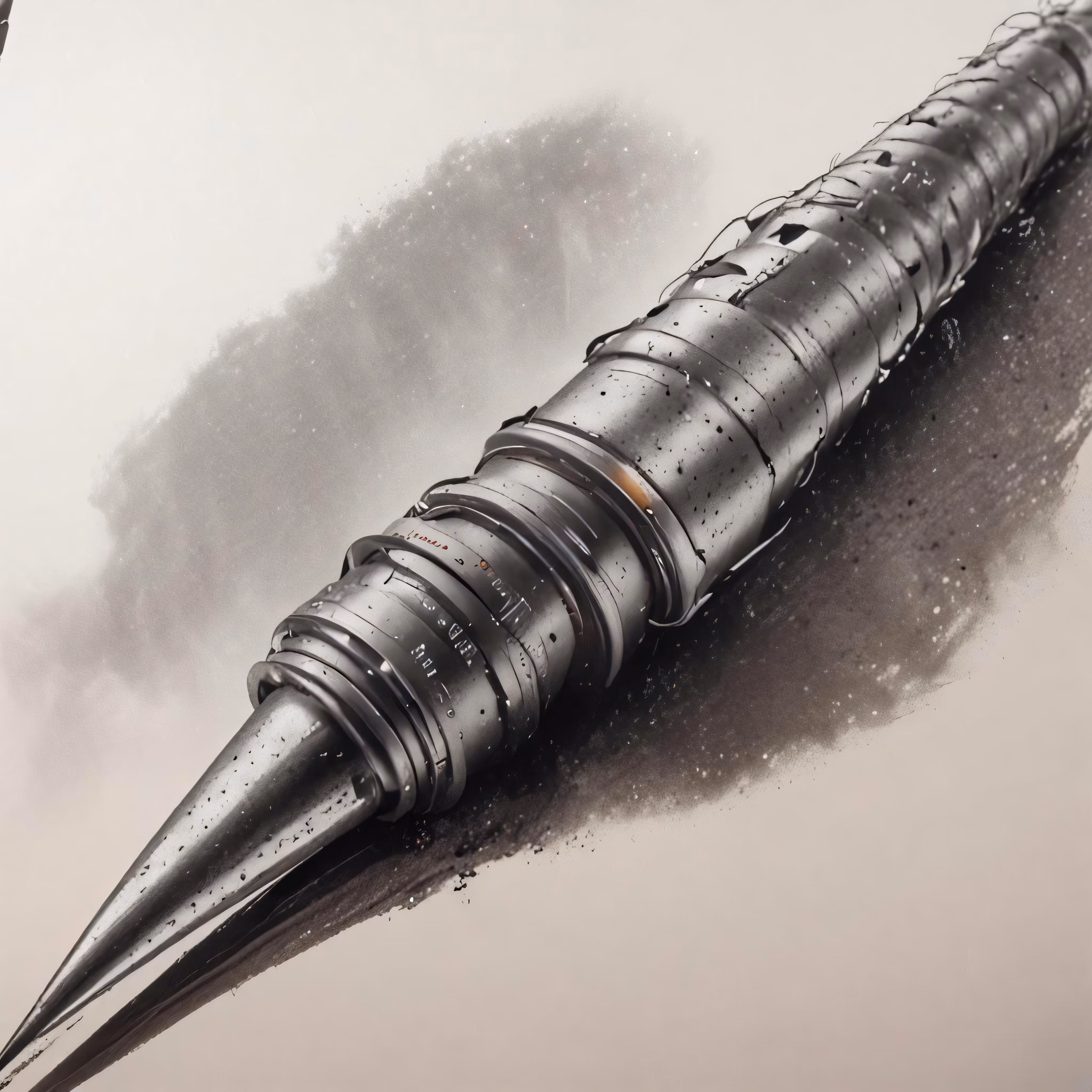 High resolution picture, free to use, an ink drawing of a large metallic fountain pen
