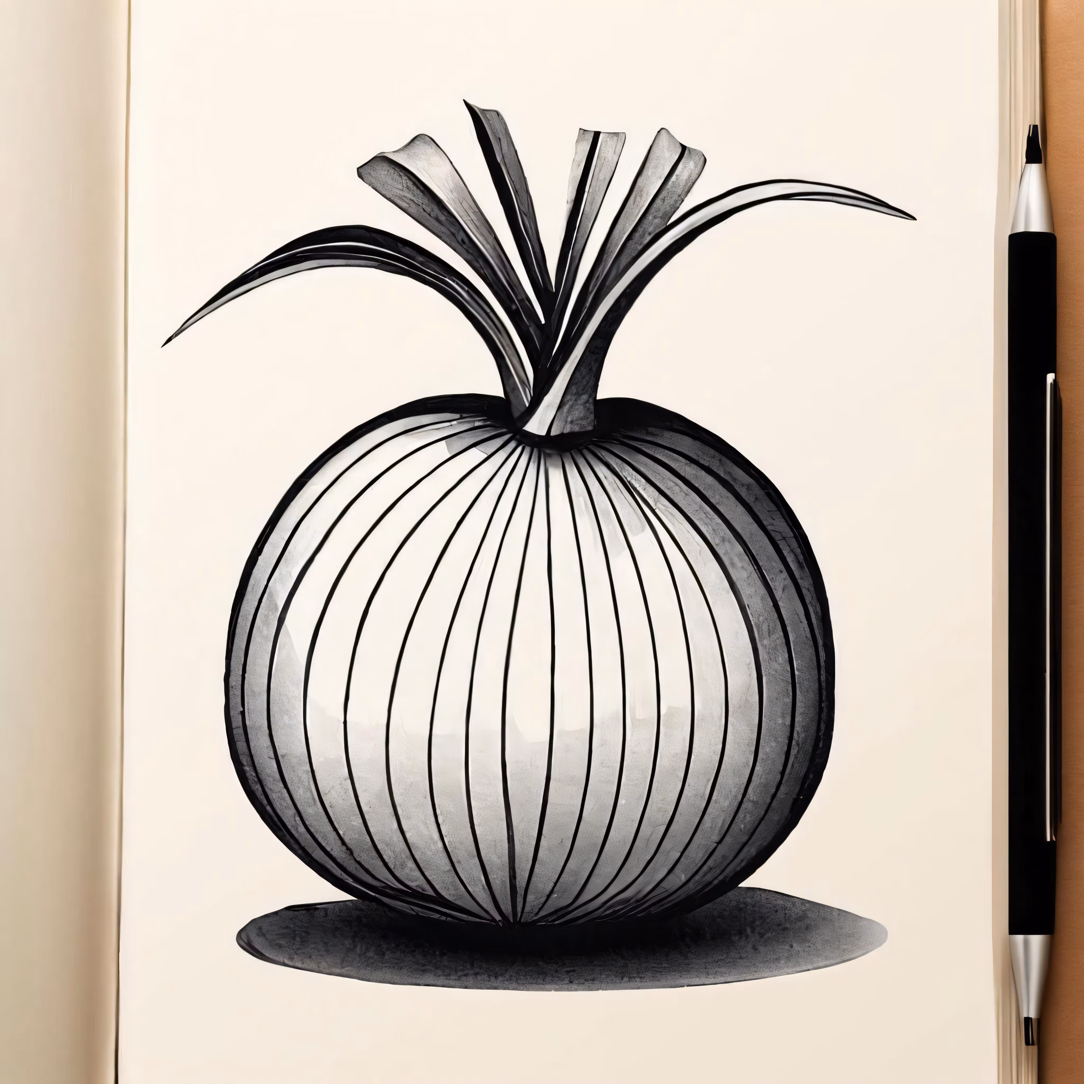 High resolution picture, free to use, an ink drawing of a onion on white paper