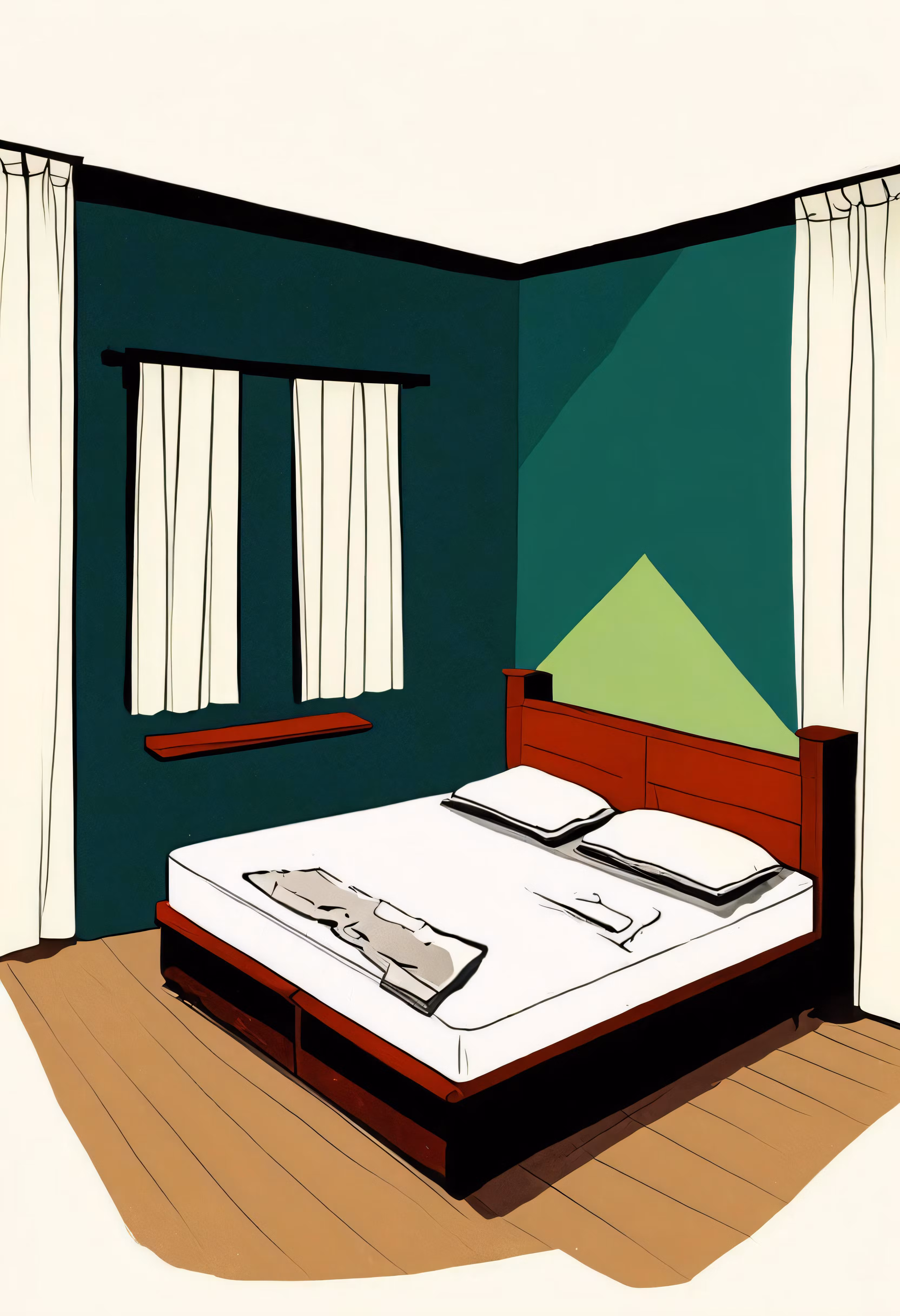 High resolution picture, free to use, an interior illustration with an image of a simple bed