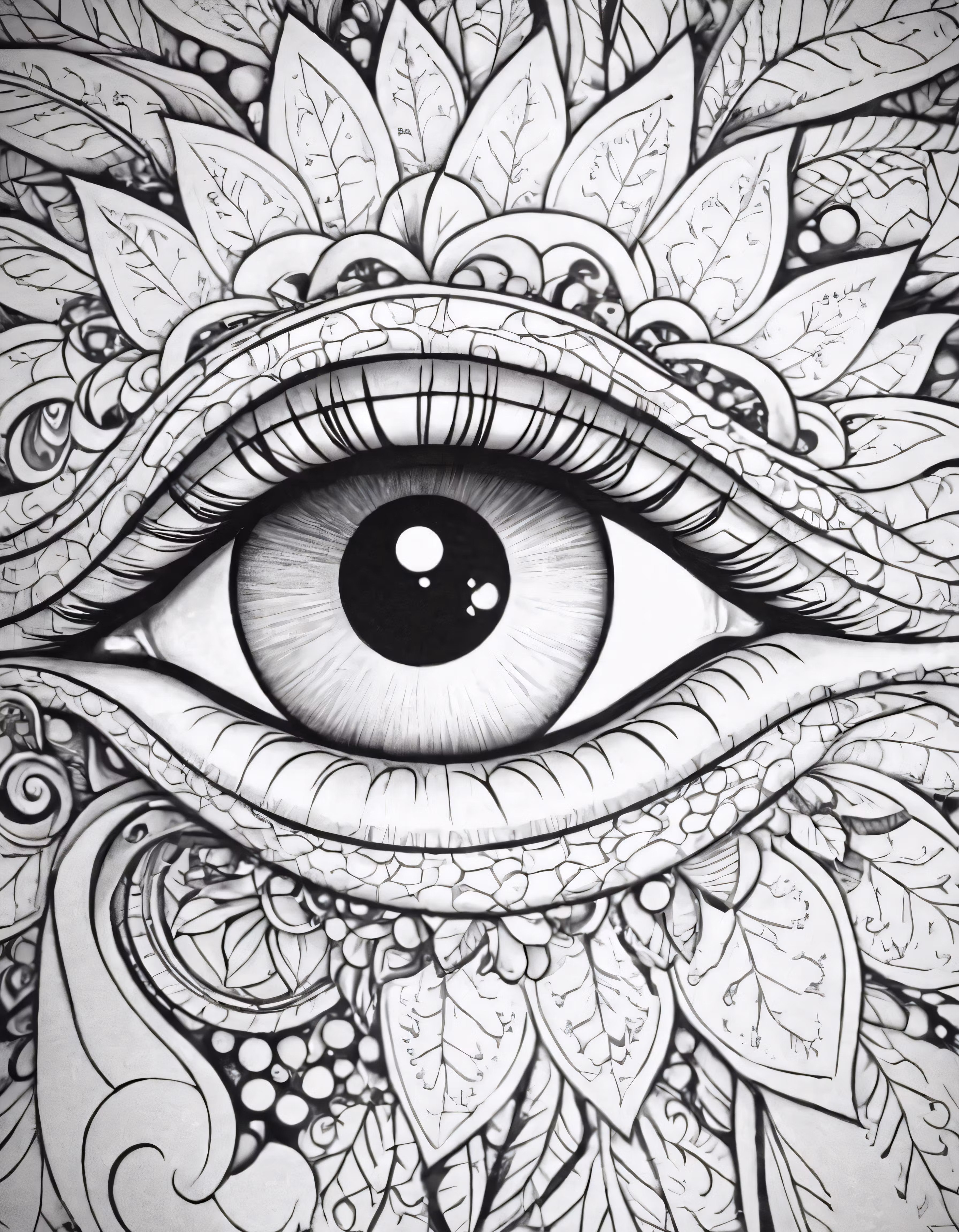 High resolution picture, free to use, an intricate eye drawing with the image in front of it