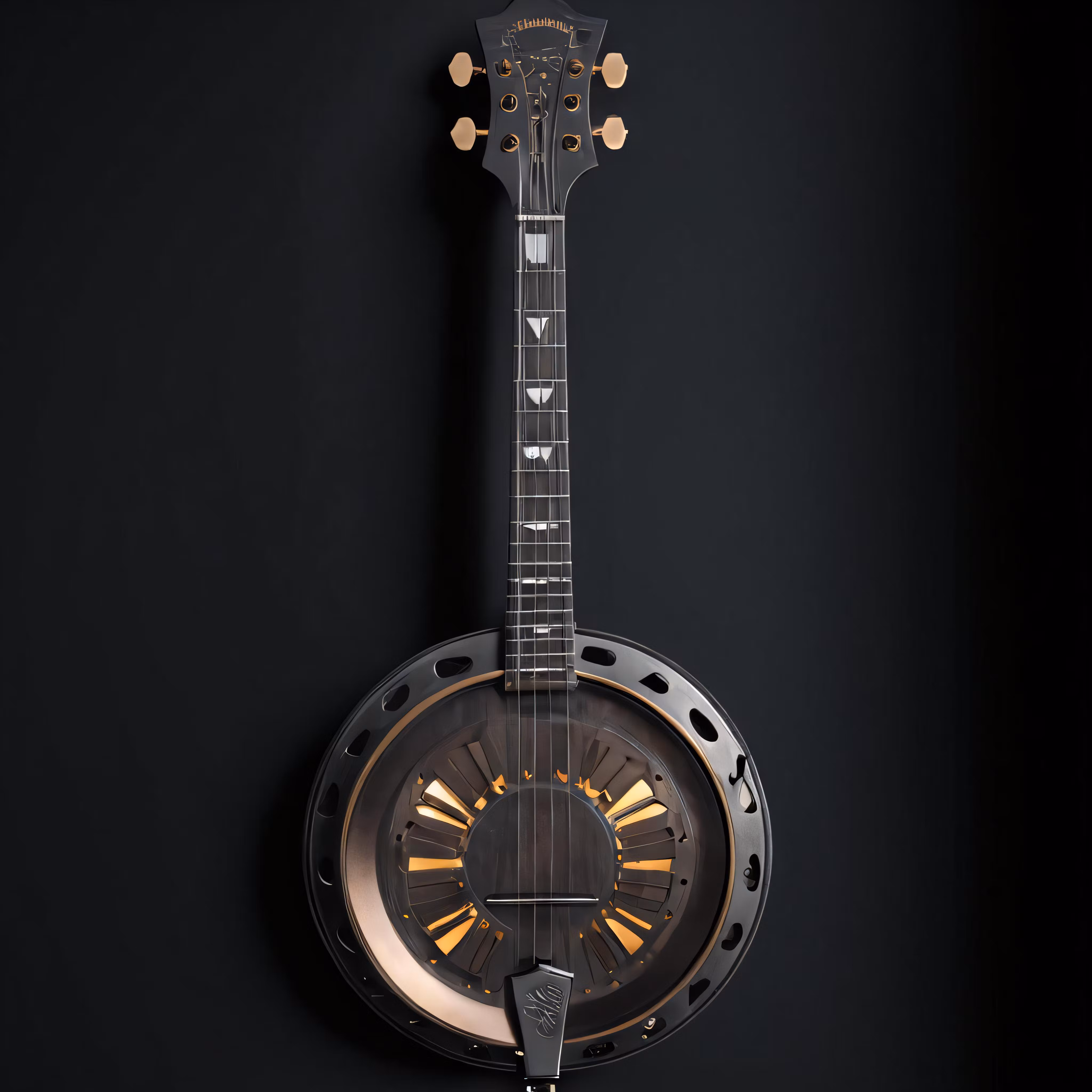 High resolution picture, free to use, an intricate looking metal instrument on display against a black background