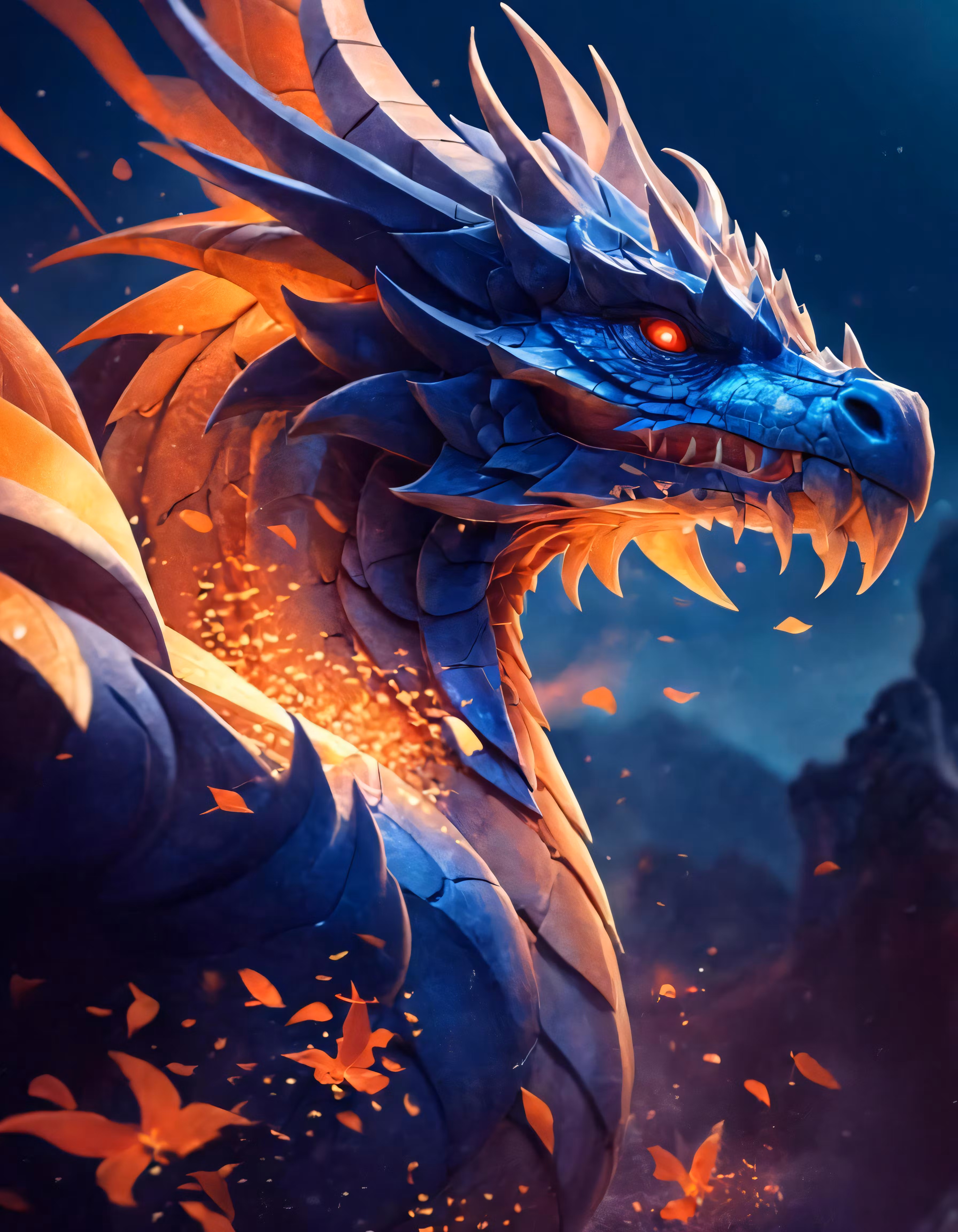 High resolution picture, free to use, an intricately designed dragon in the moonlight