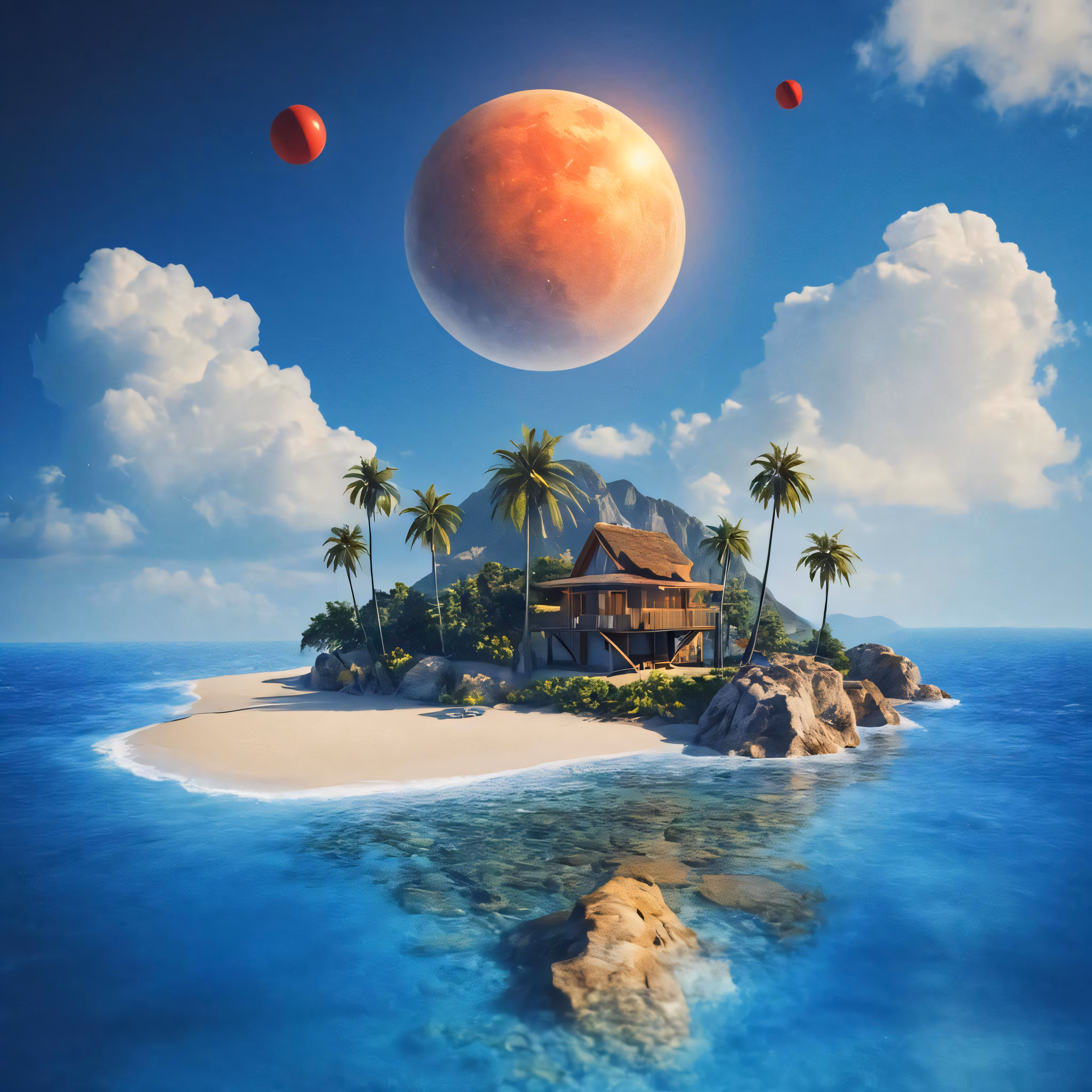 High resolution picture, free to use, an island with a hut in the middle of it