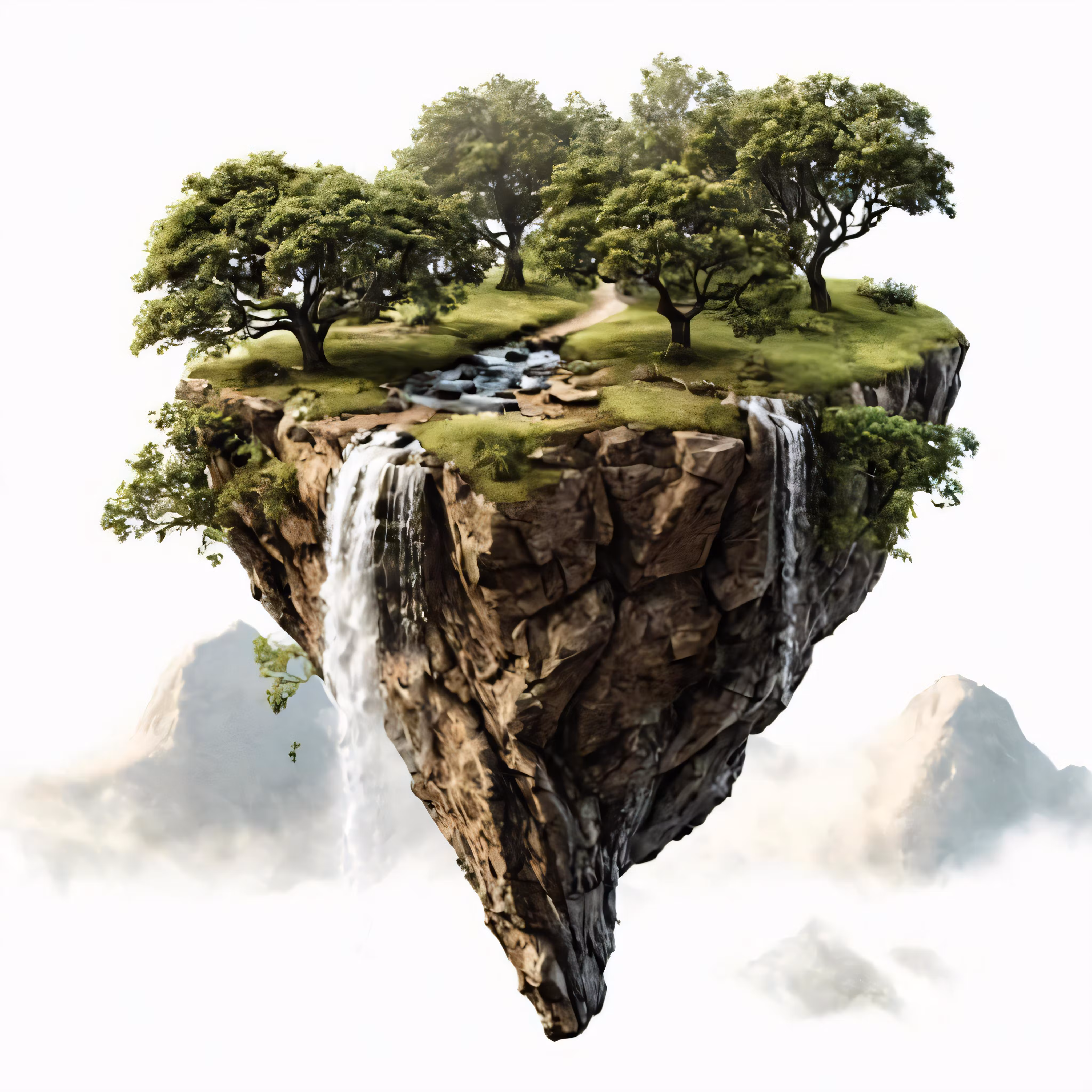 High resolution picture, free to use, an island with waterfall flowing through it