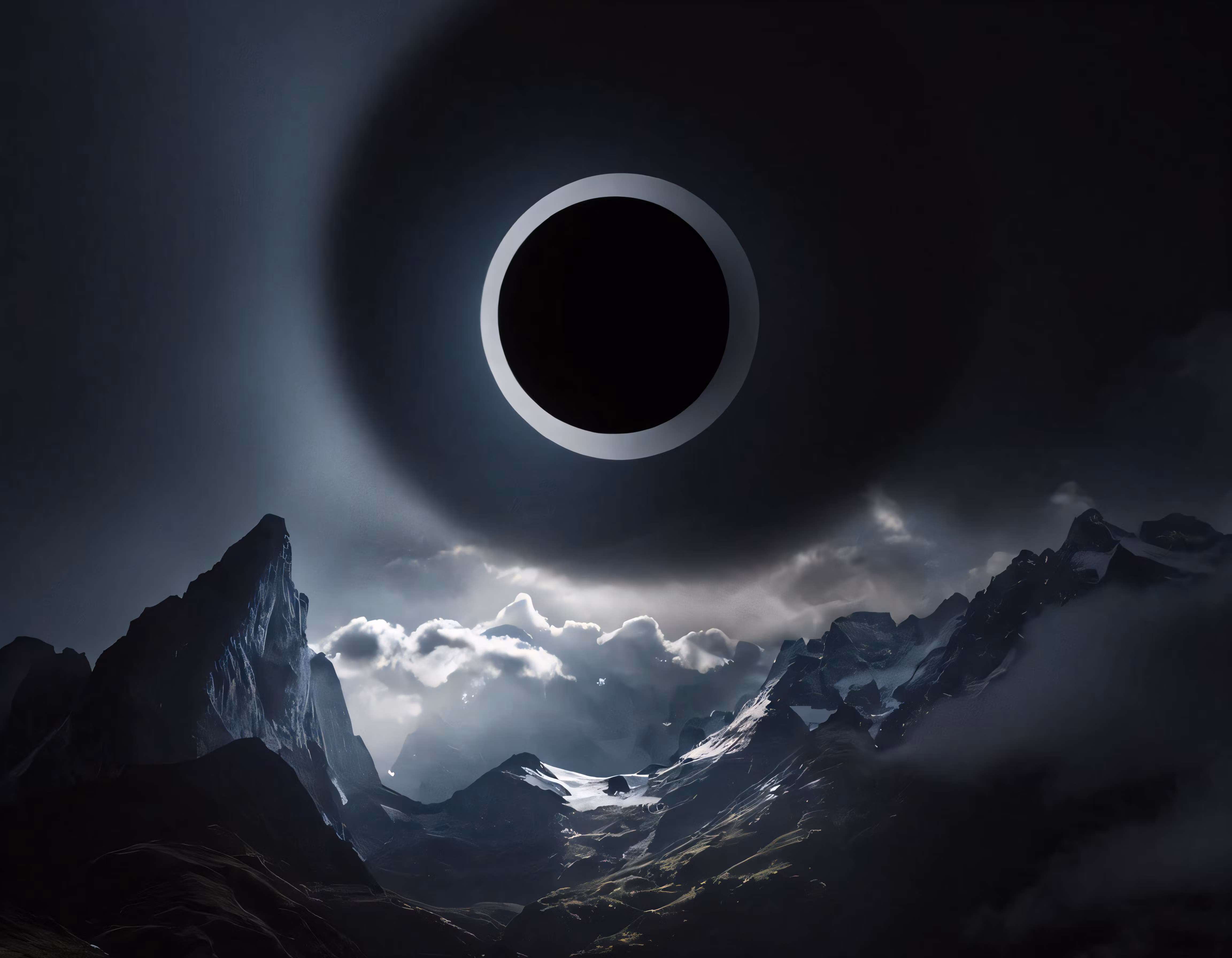 High resolution picture, free to use, an object over mountains is dark in the sky