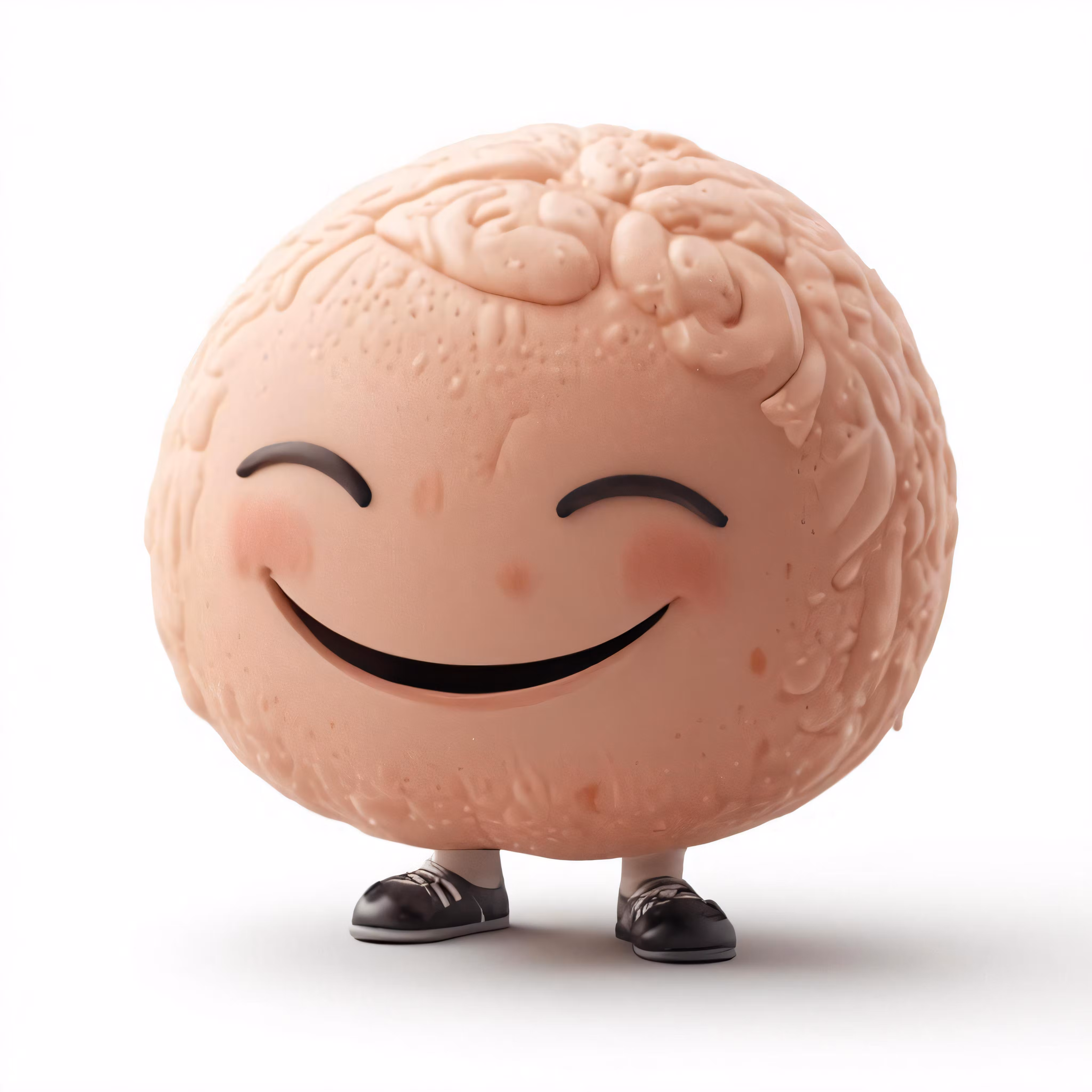 High resolution picture, free to use, an odd brain model that is smiling with eyes closed