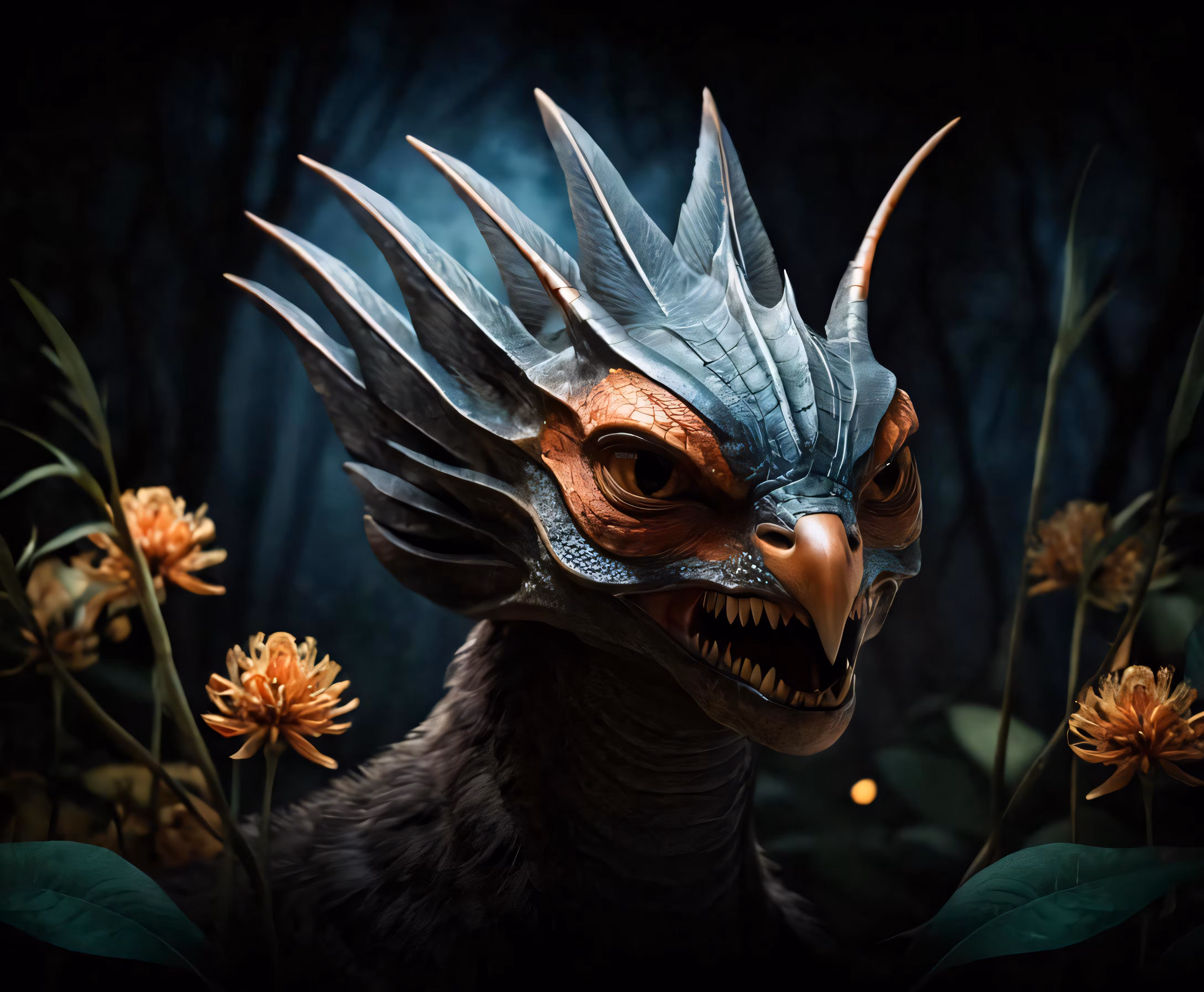 High resolution picture, free to use, an odd looking dragon head is sitting in the grass