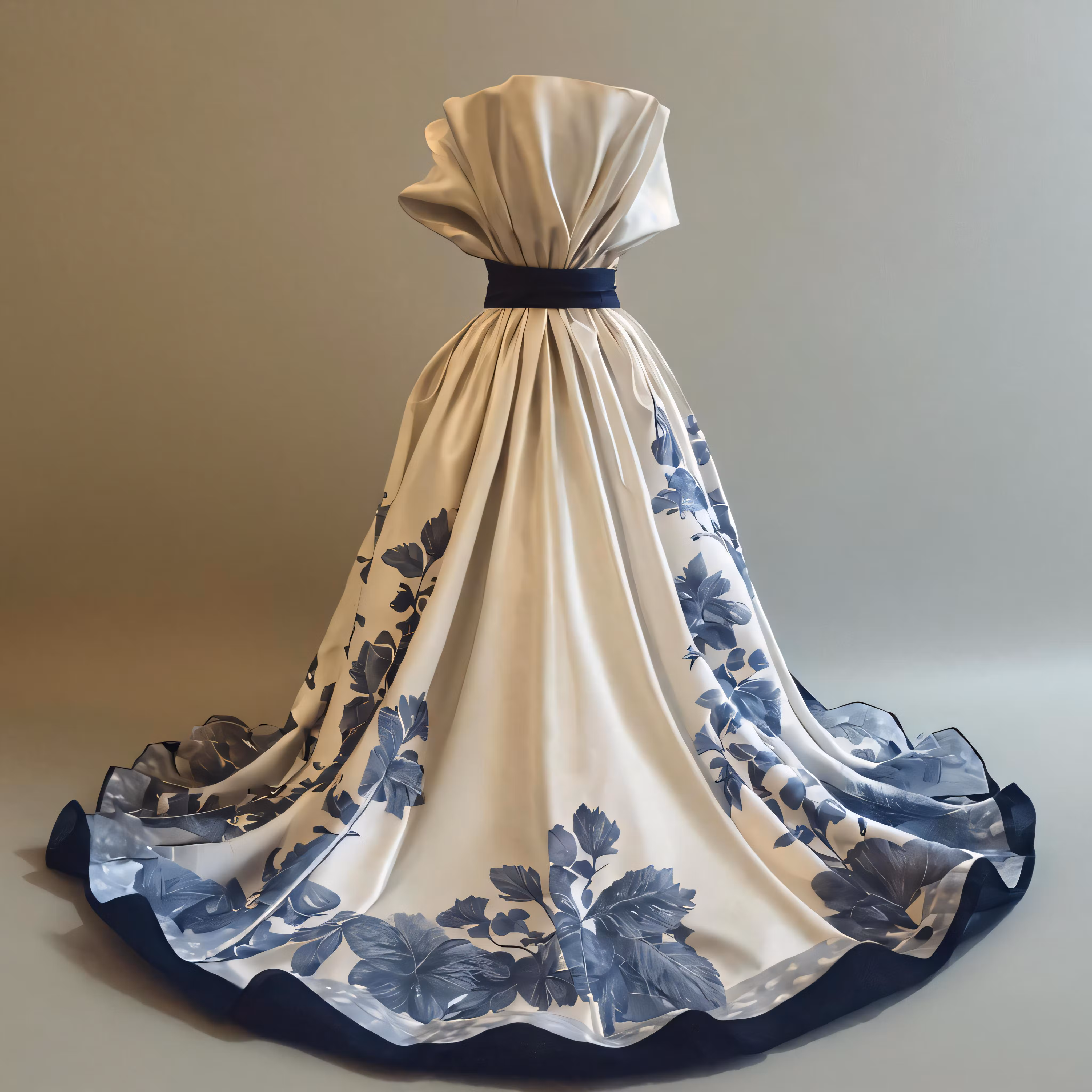High resolution picture, free to use, an off white dress with blue flowers on it