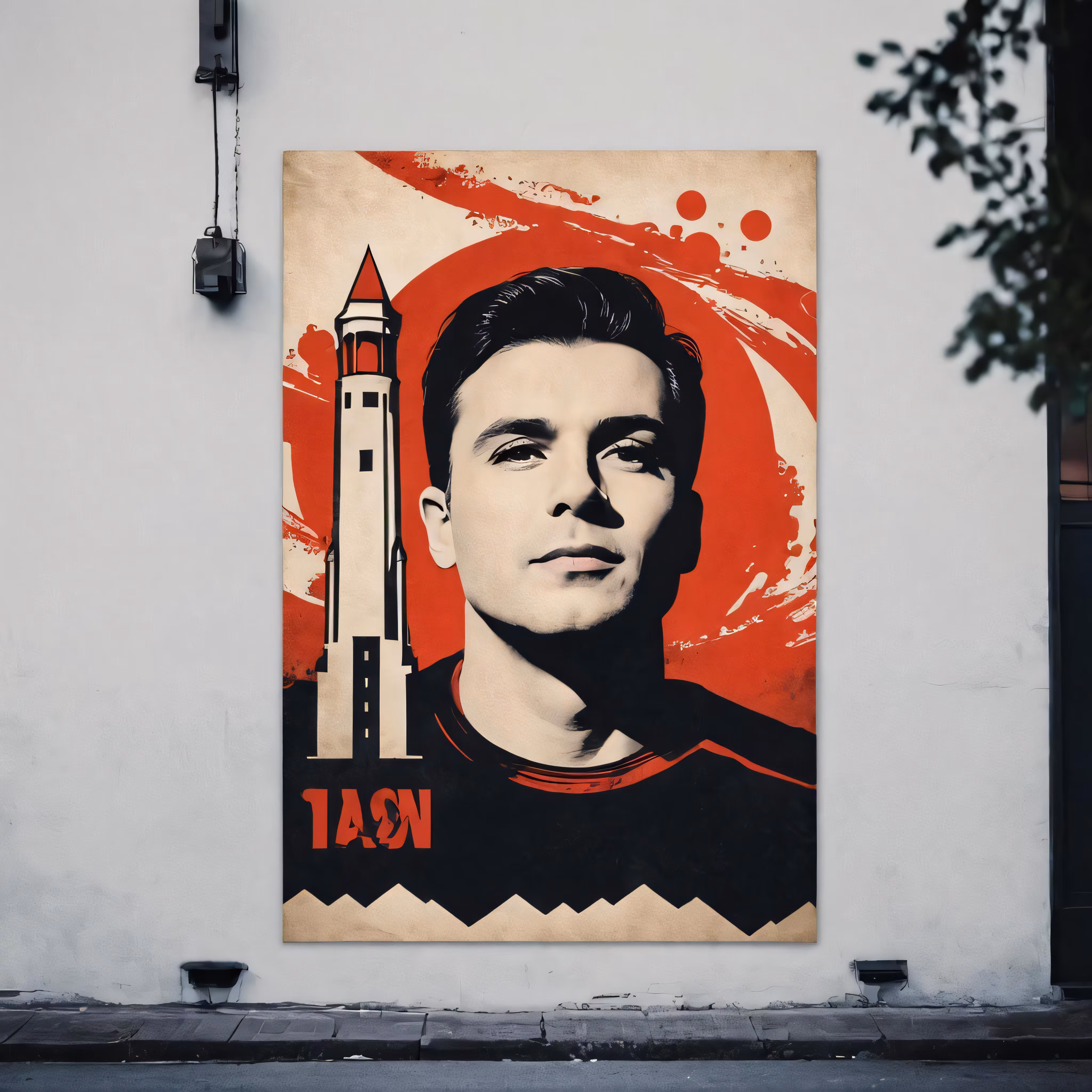 High resolution picture, free to use, an old, vintage, poster featuring a man with a rocket on his shoulder