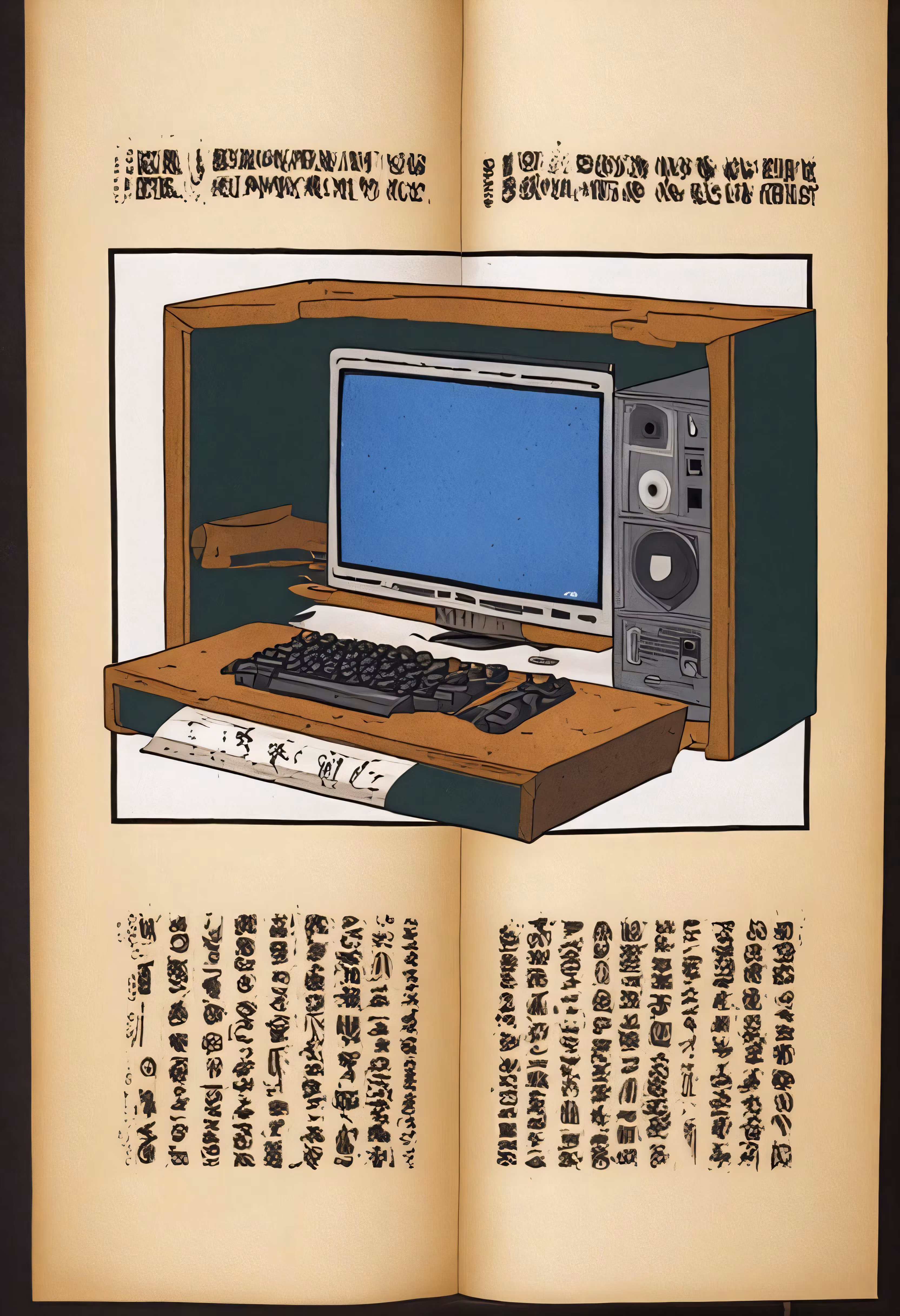 High resolution picture, free to use, an old book opened to an instruction page on how to use a computer