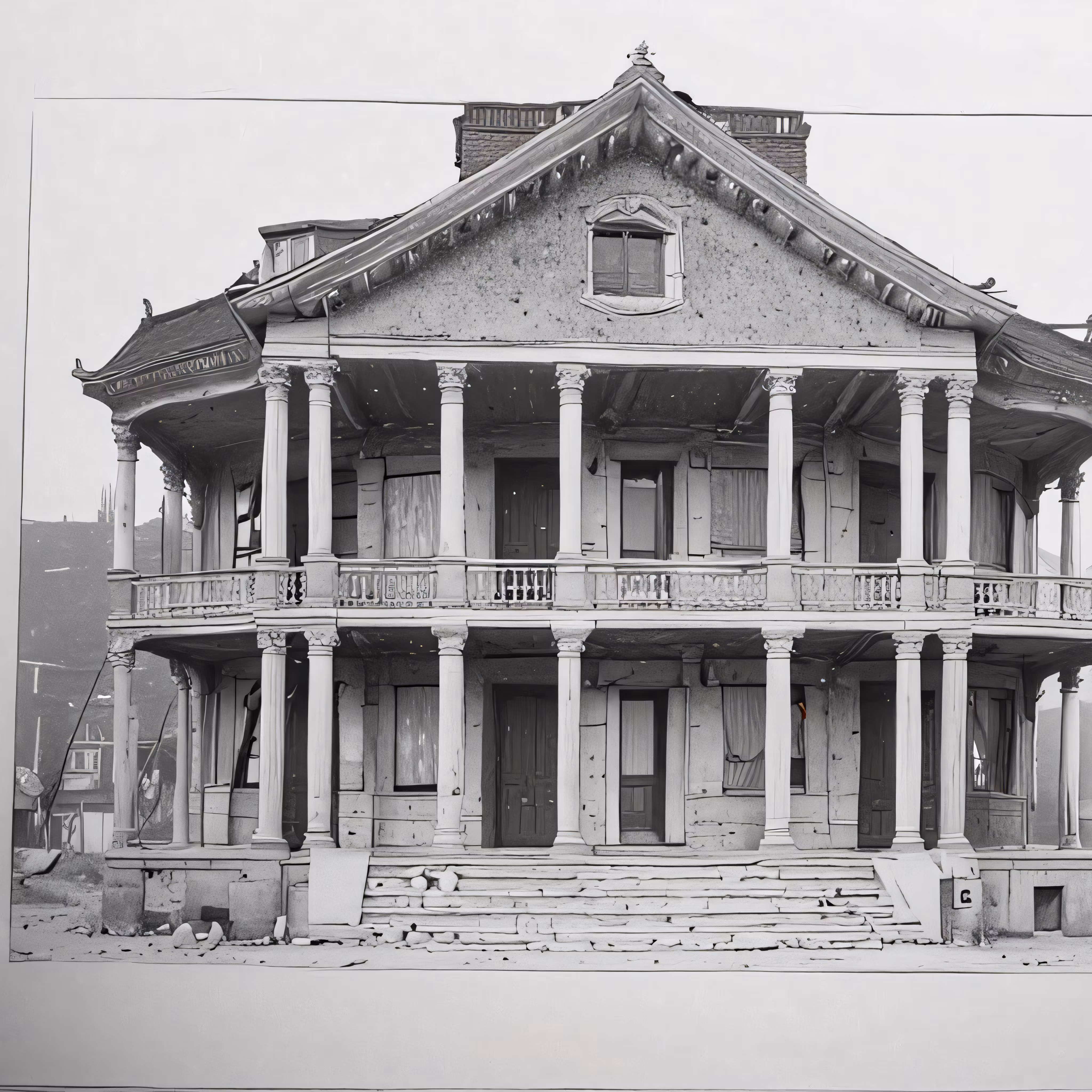 High resolution picture, free to use, an old building has porchs and balconies