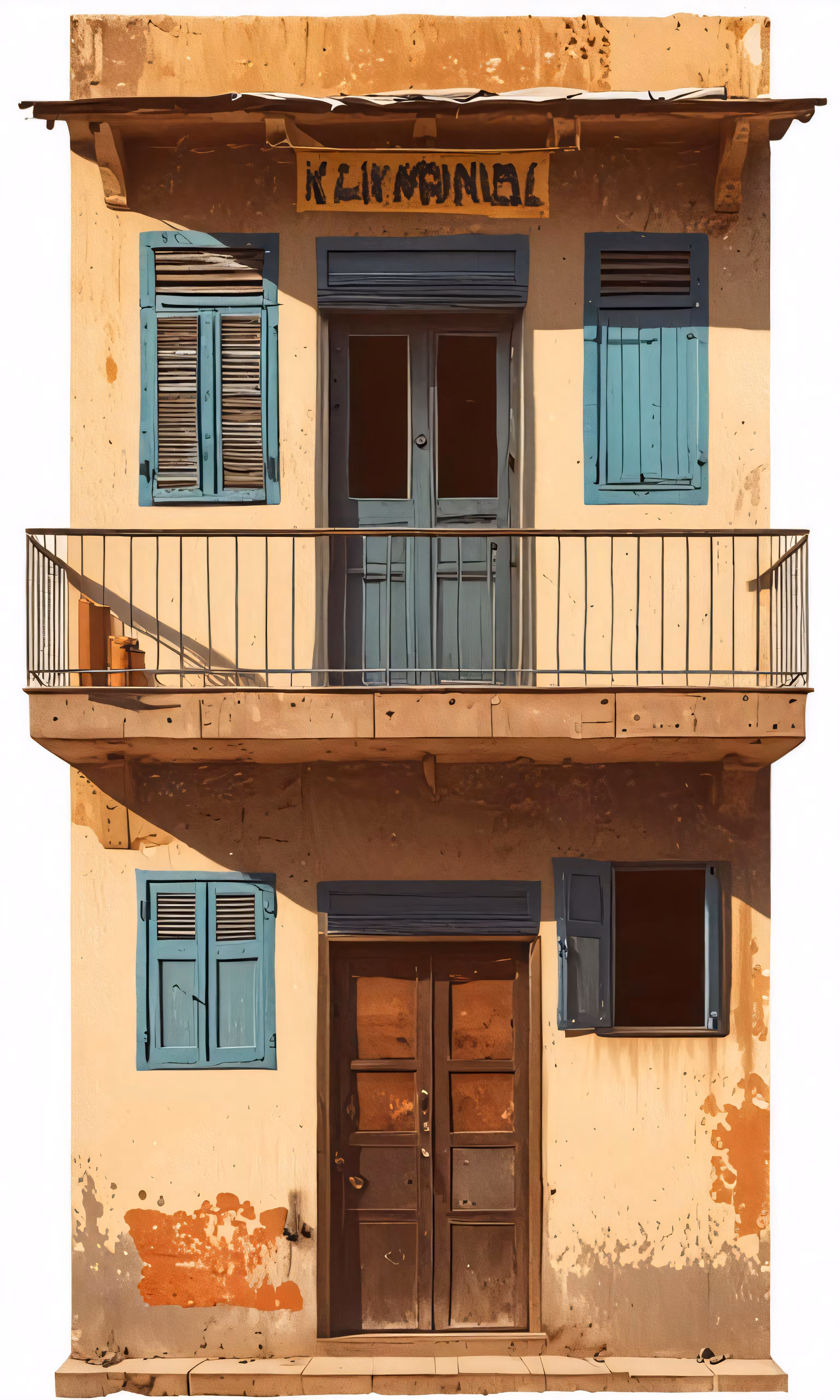 High resolution picture, free to use, an old building with blue shutters and green windows