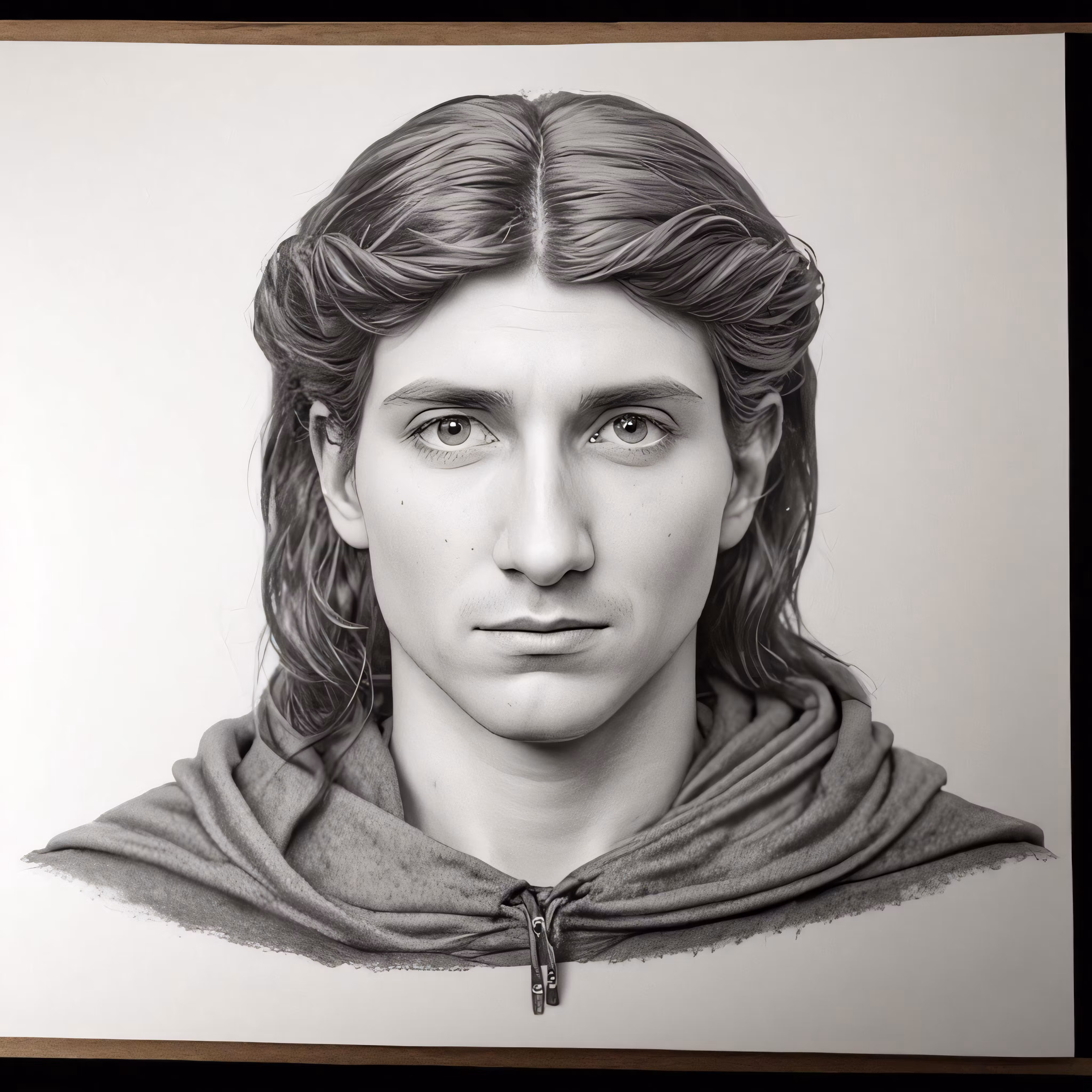 High resolution picture, free to use, an old drawing of a man wearing a hoodie