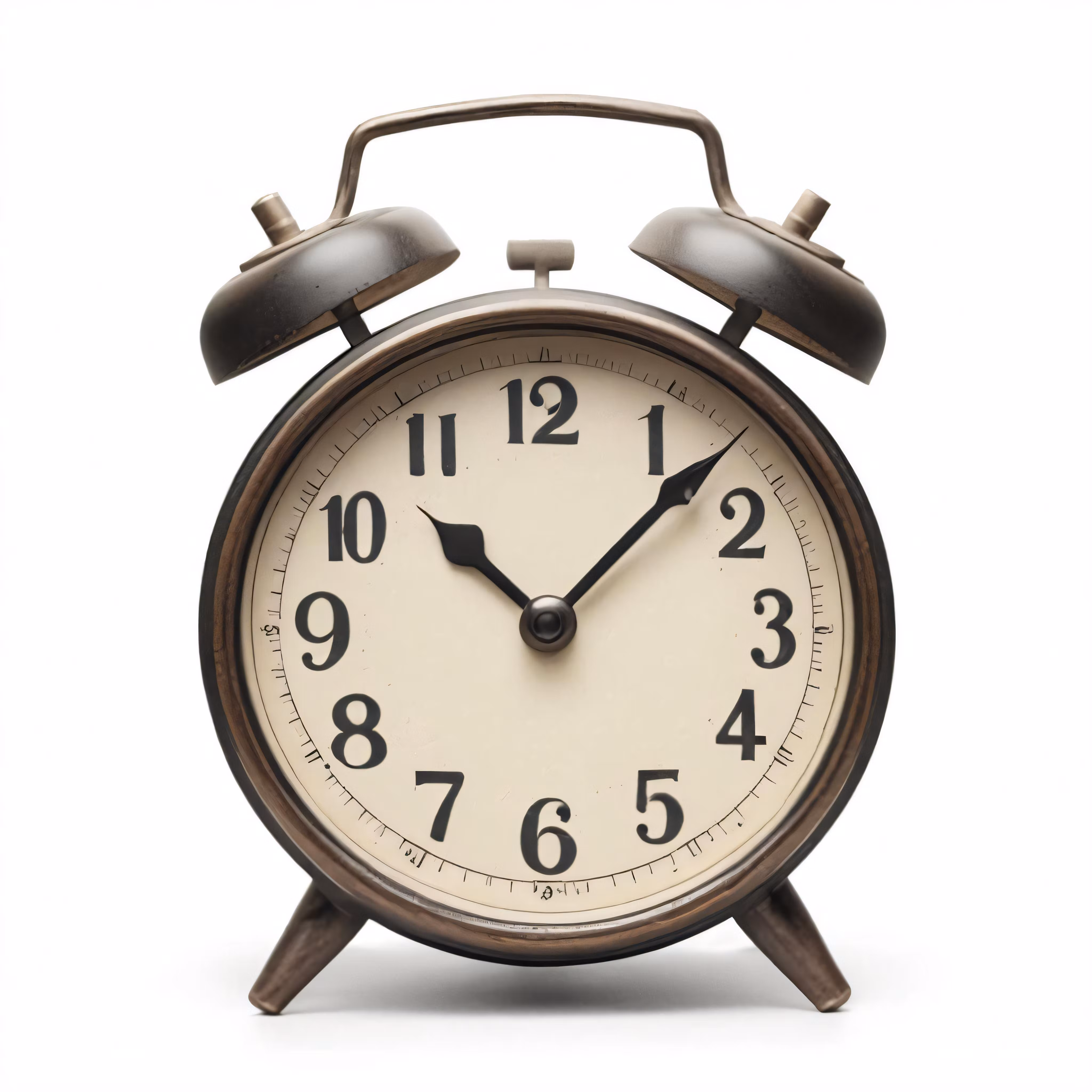 High resolution picture, free to use, an old fashioned alarm clock with one hand in the air