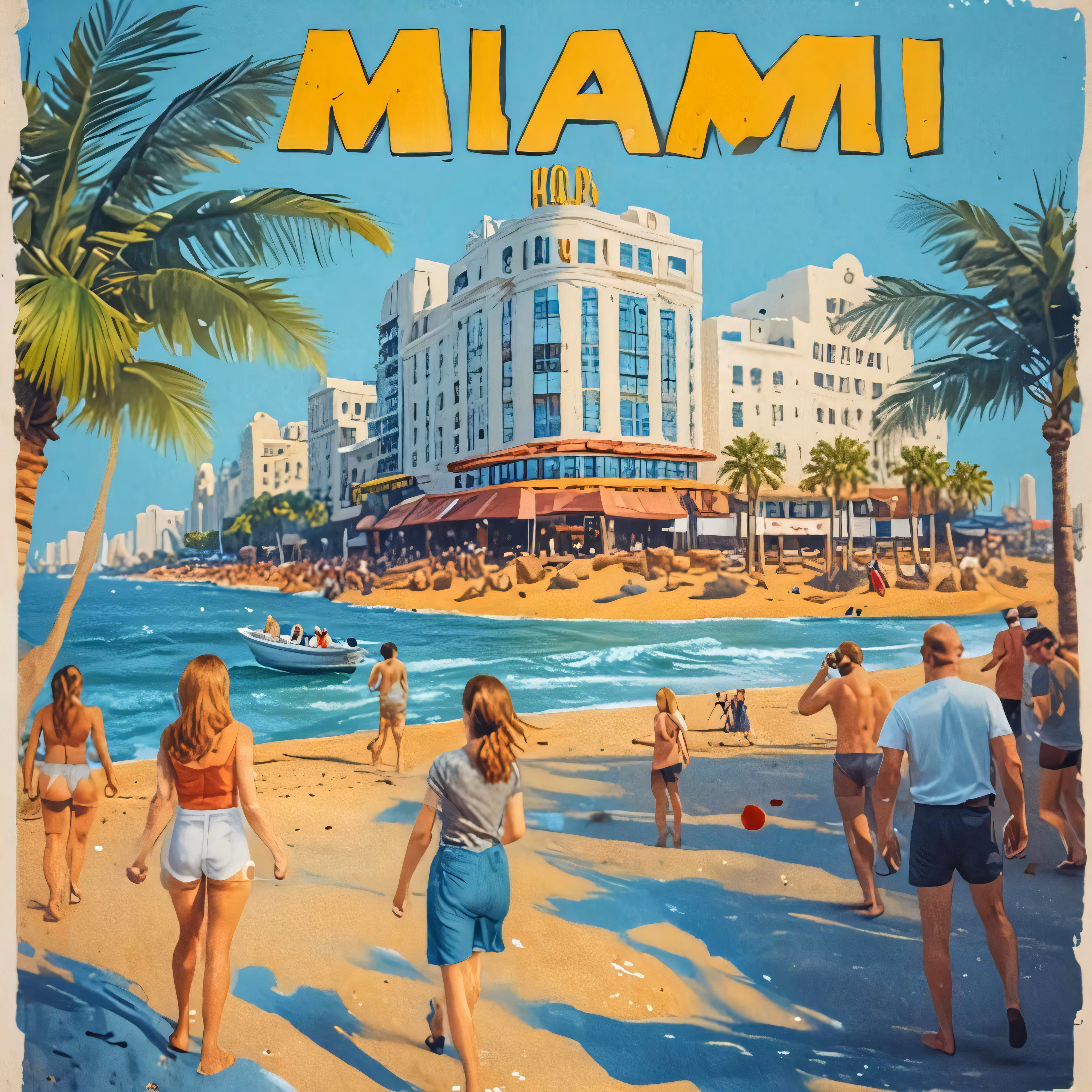 High resolution picture, free to use, an old fashioned travel poster from the 1930s