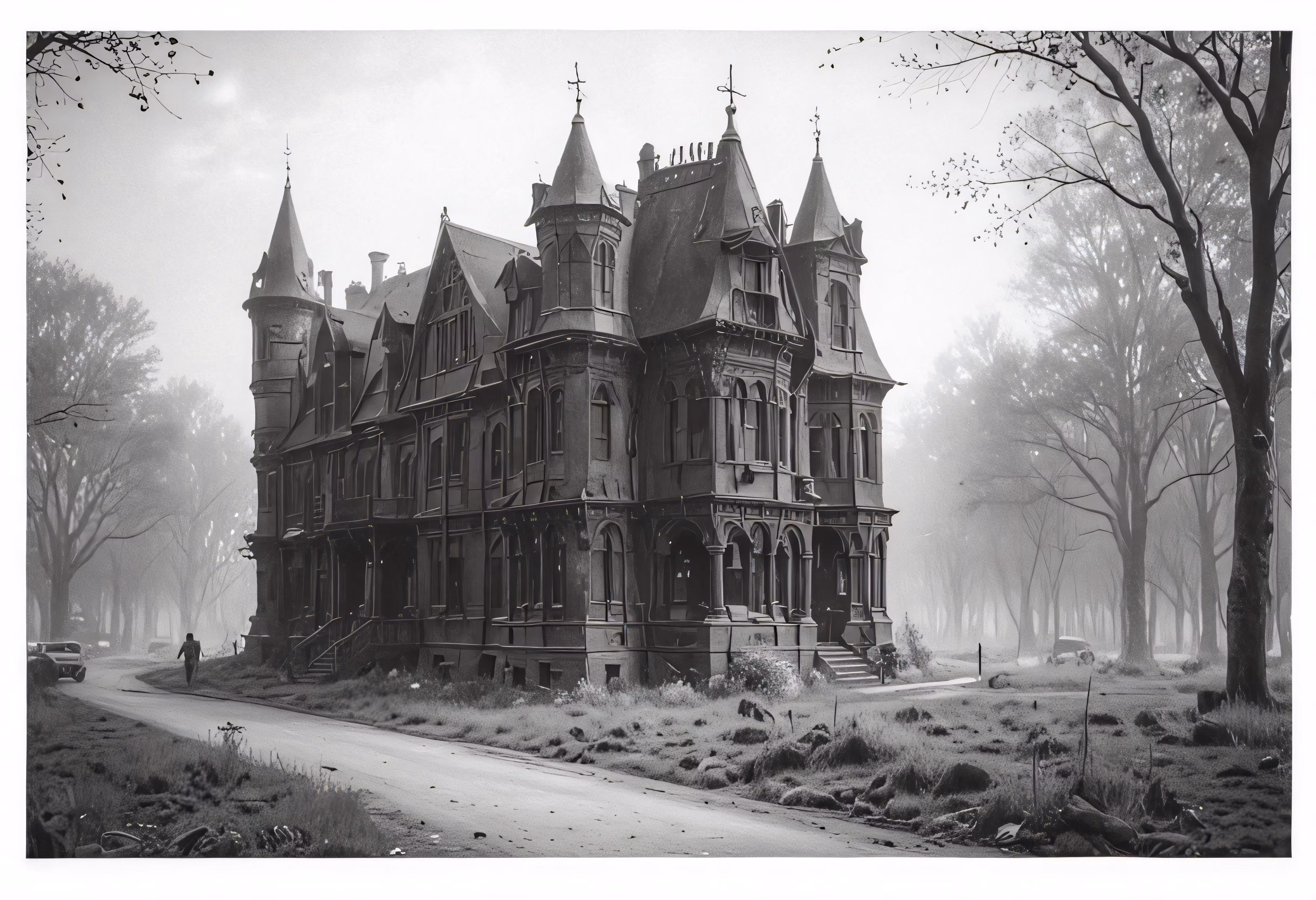 High resolution picture, free to use, an old gothic   style building stands over an icy path