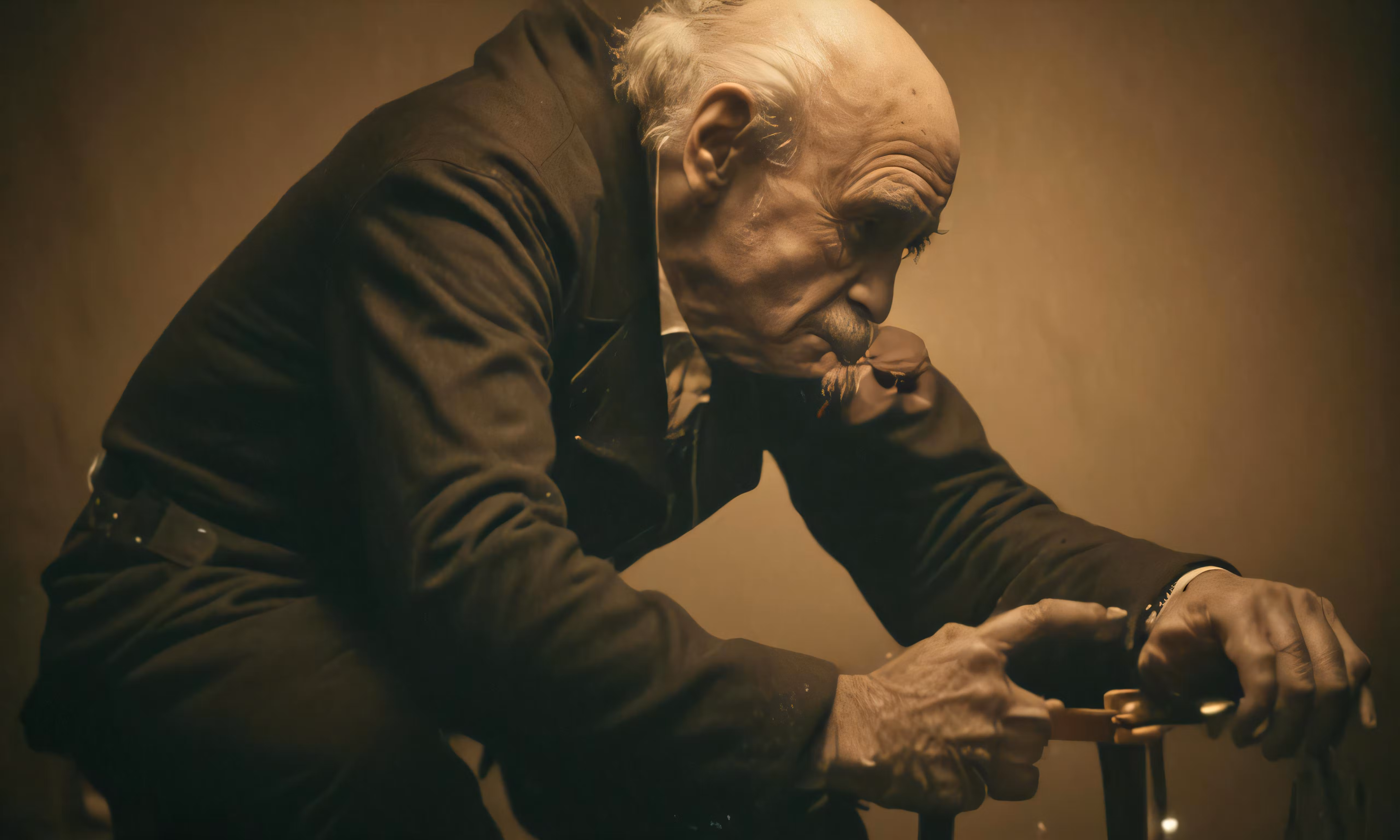 High resolution picture, free to use, an old man in the middle of putting something on his leg