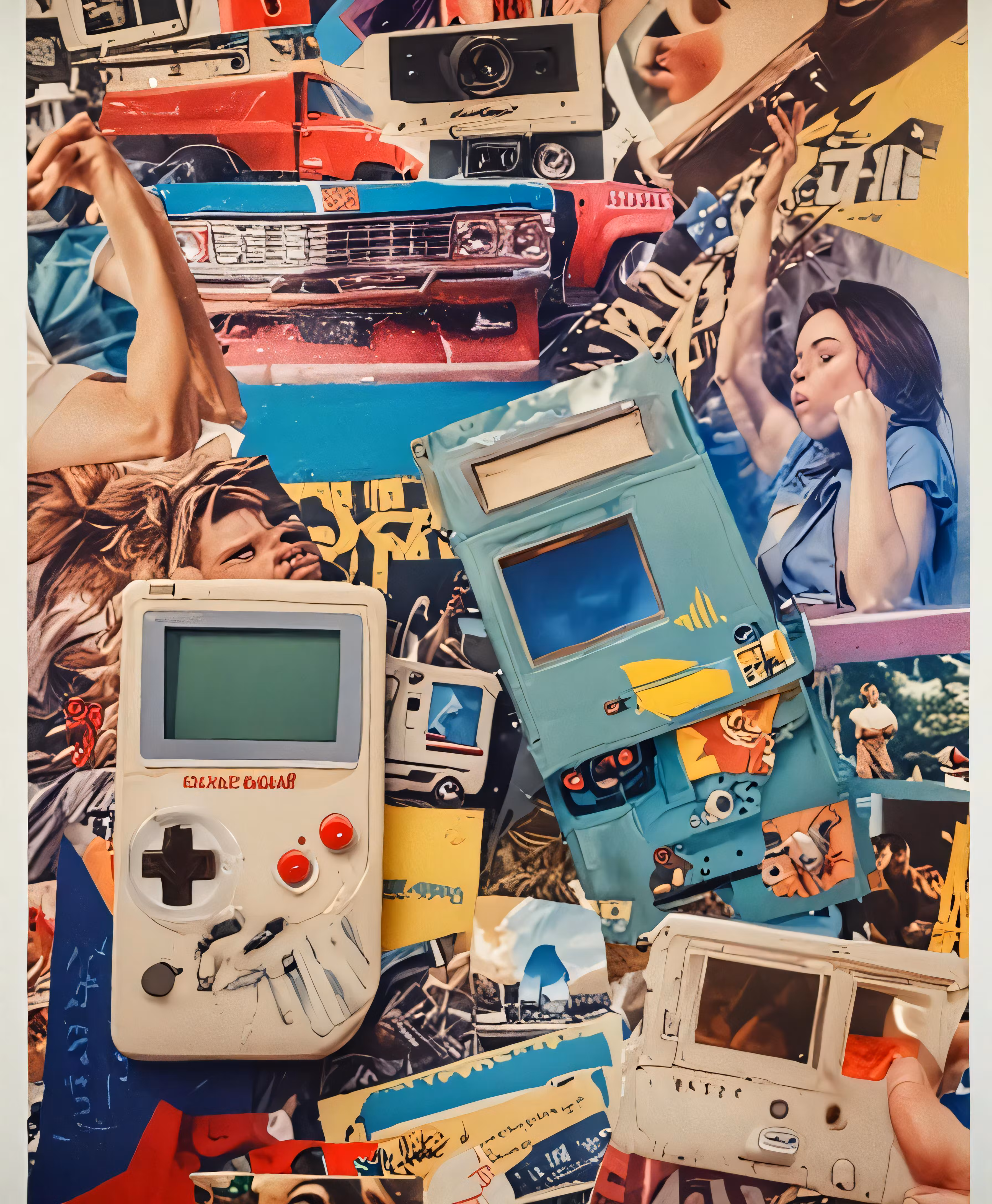 High resolution picture, free to use, an old nintendo game console surrounded by collage of old gaming consoles