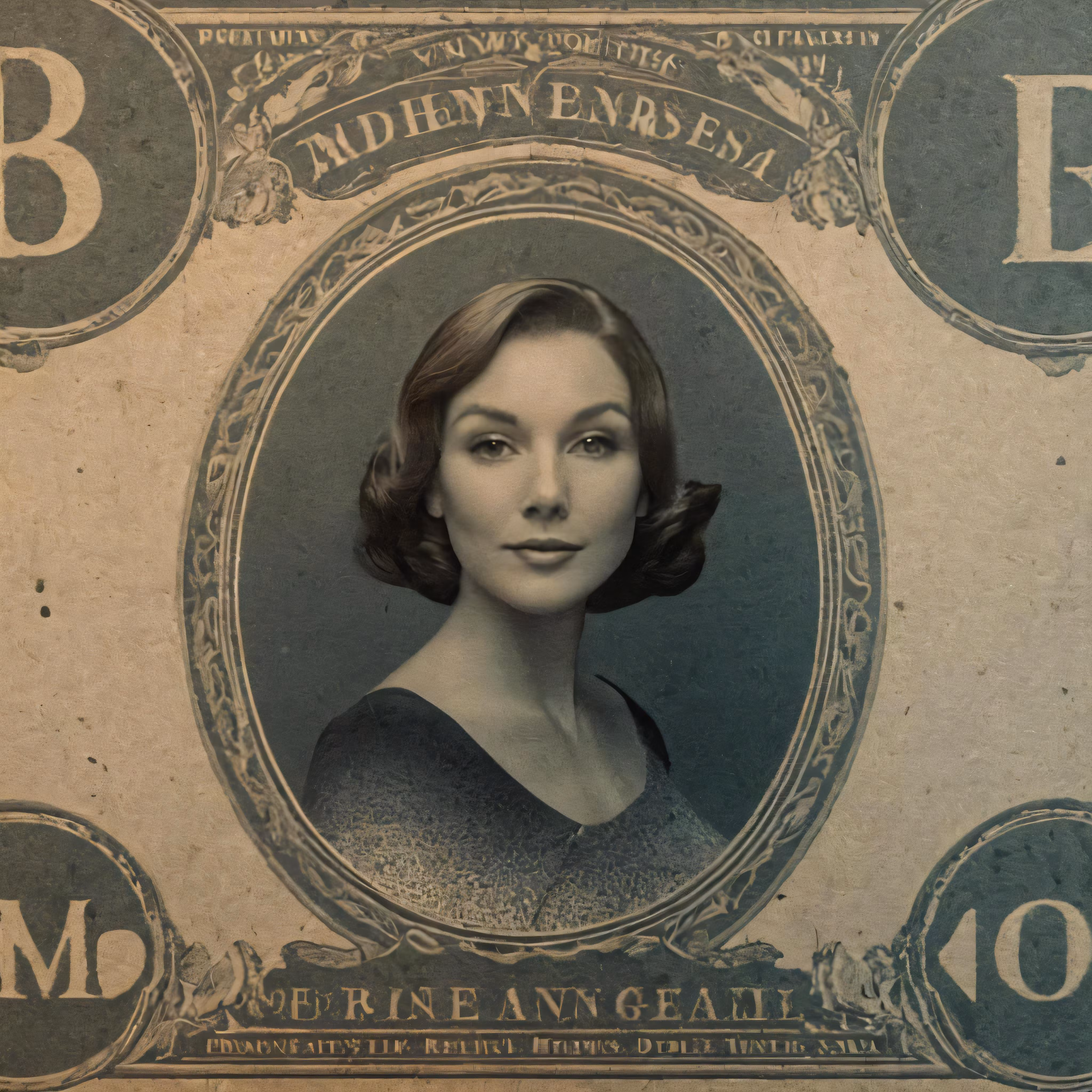 High resolution picture, free to use, an old photo of a woman on top of a one dollar bill
