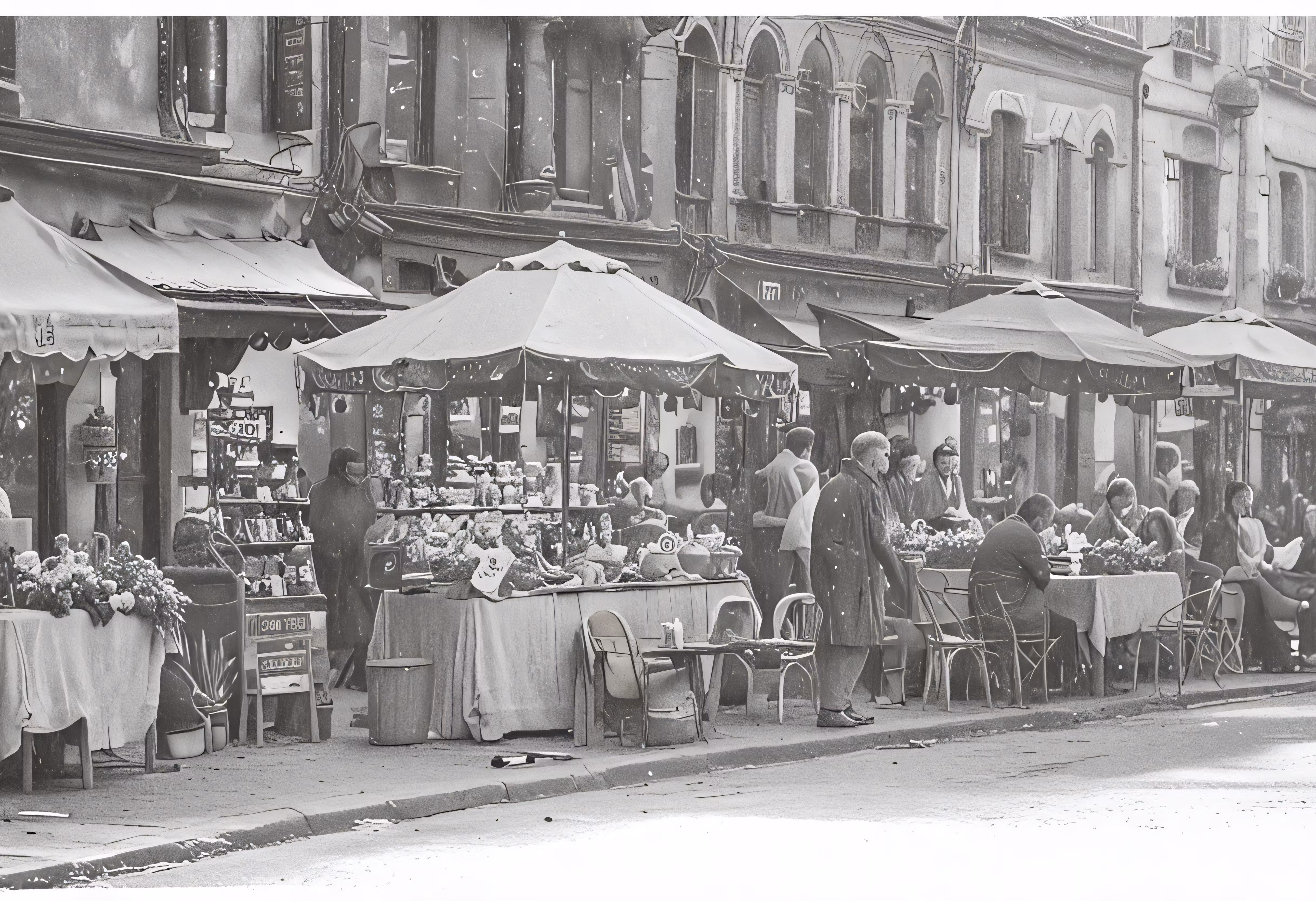 High resolution picture, free to use, an old photo of people and vendors in a town square