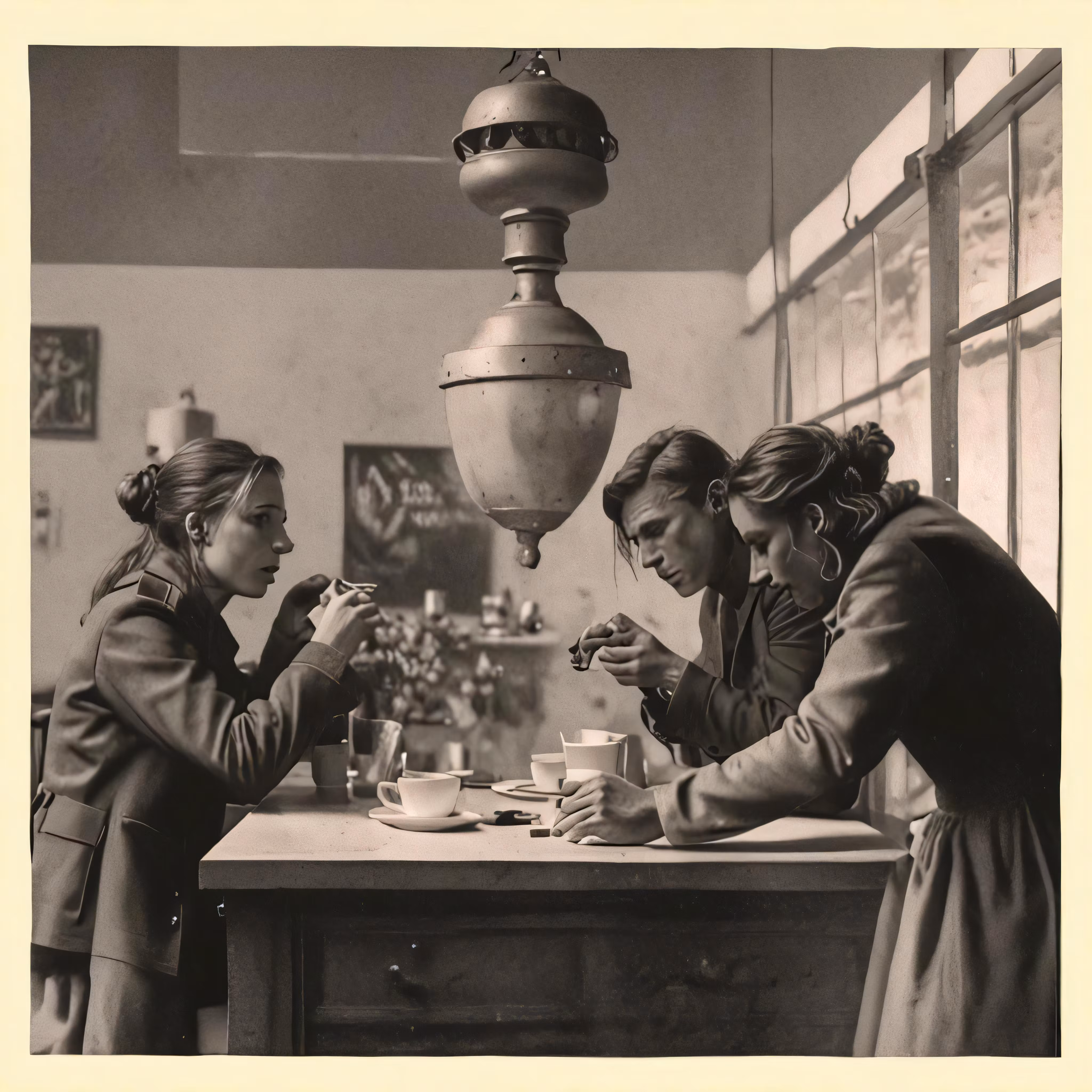 High resolution picture, free to use, an old photo of three girls sitting at a table