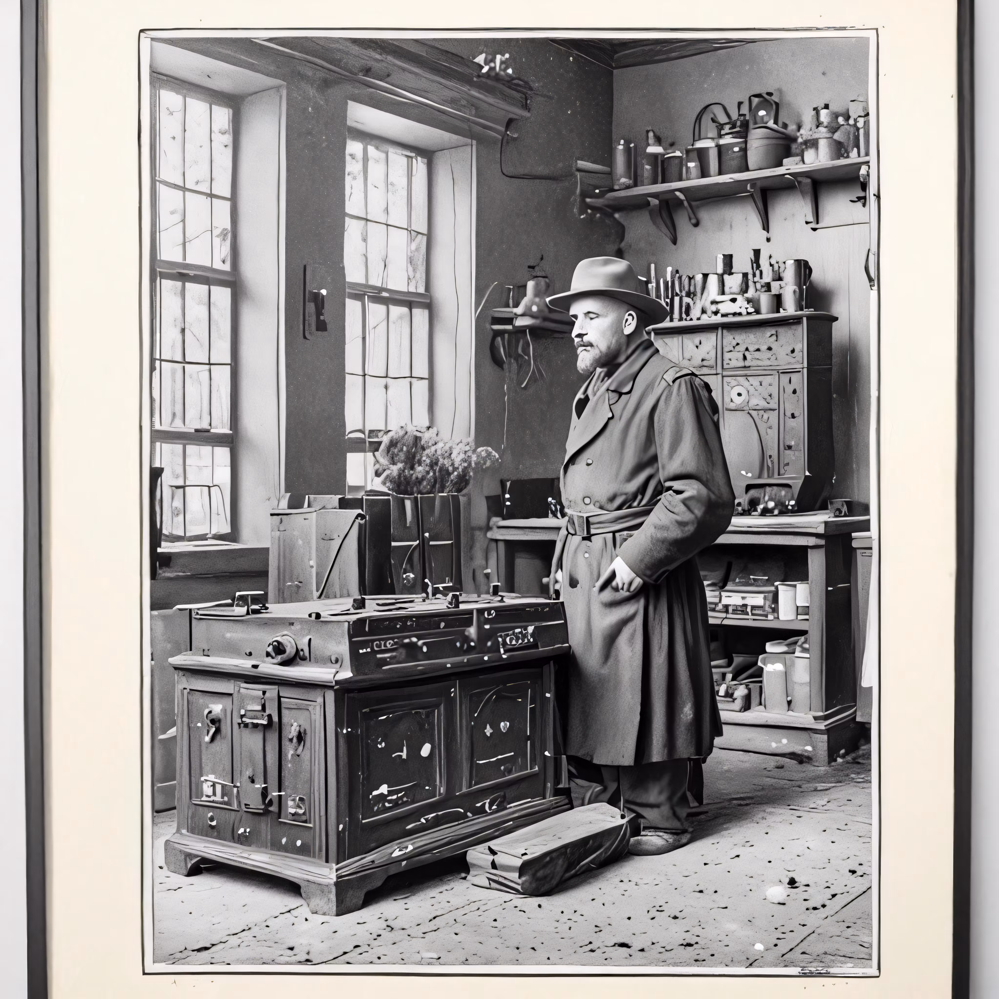 High resolution picture, free to use, an old photograph of a man in his workshop