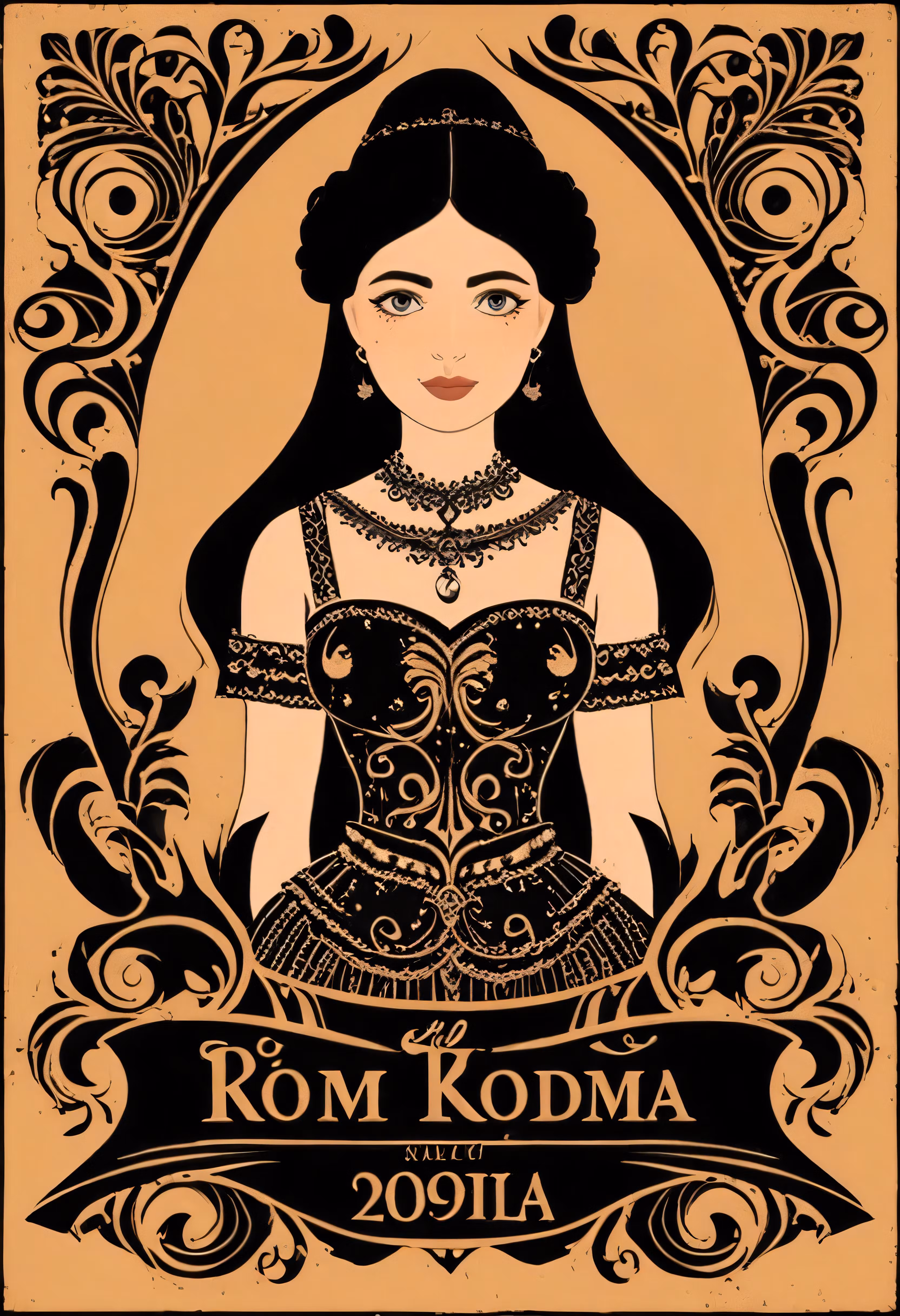 High resolution picture, free to use, an old poster depicting a woman in a dress