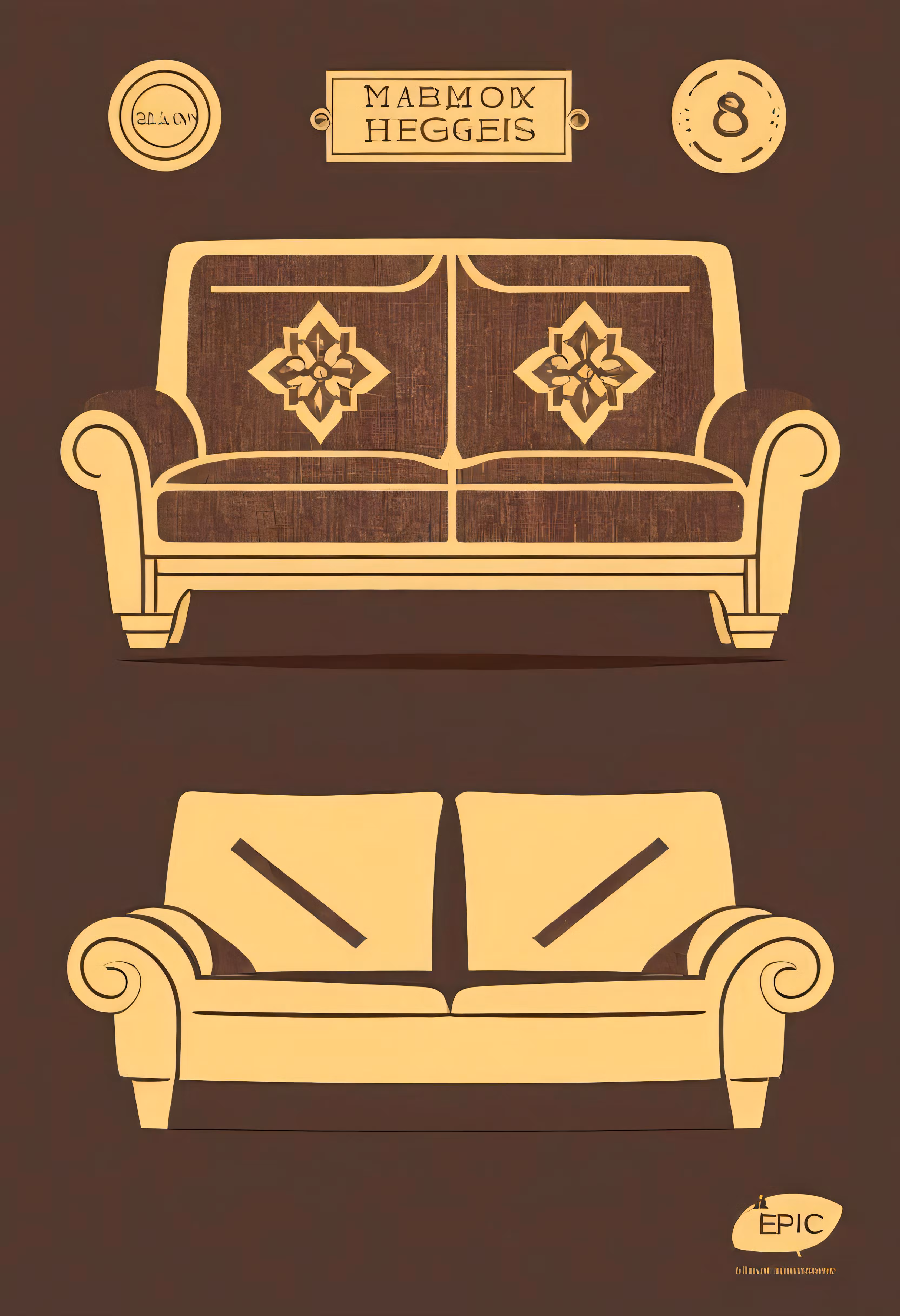 High resolution picture, free to use, an old style couch with the words patchwork quilts on it