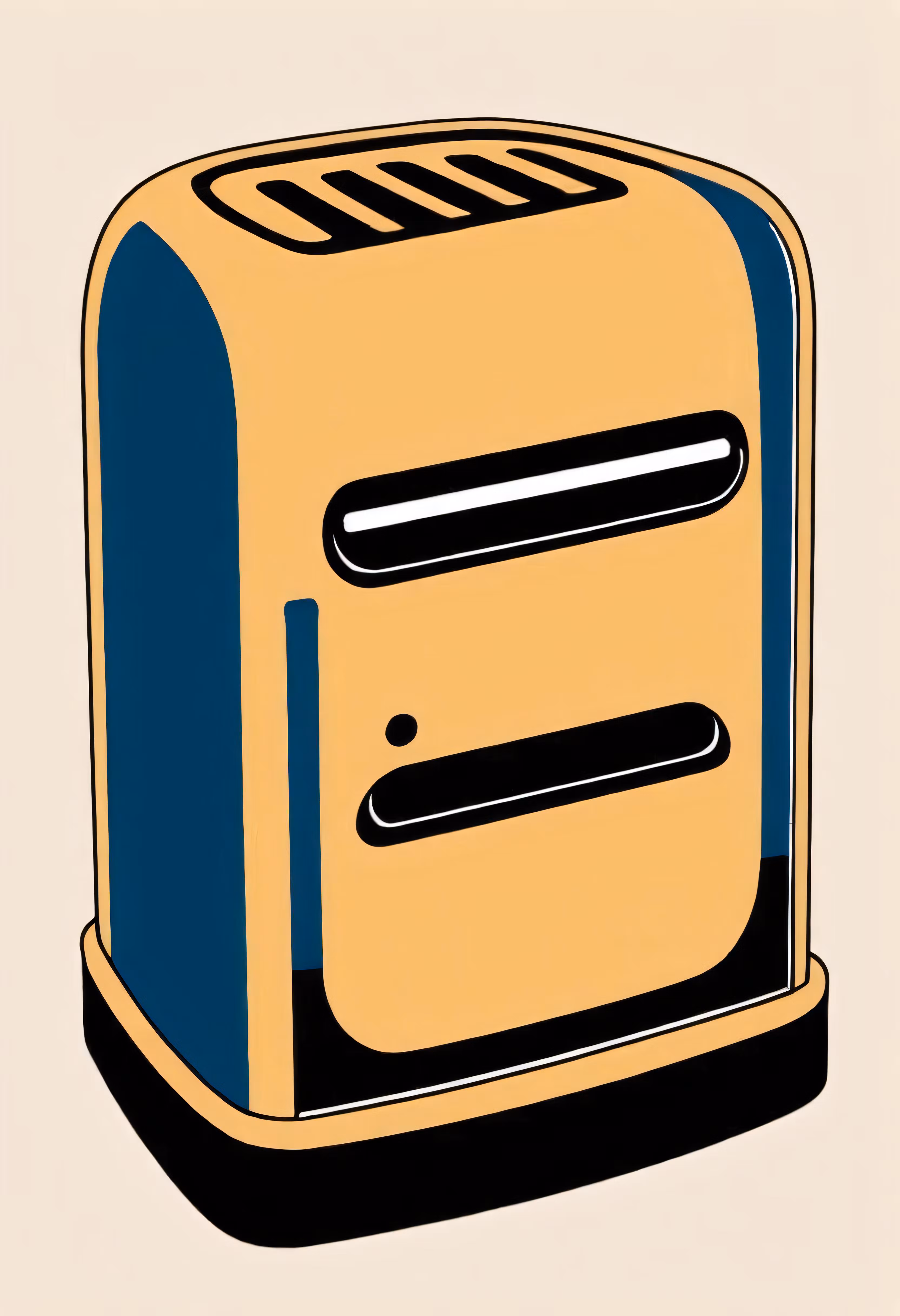 High resolution picture, free to use, an old toaster with a blue and yellow color
