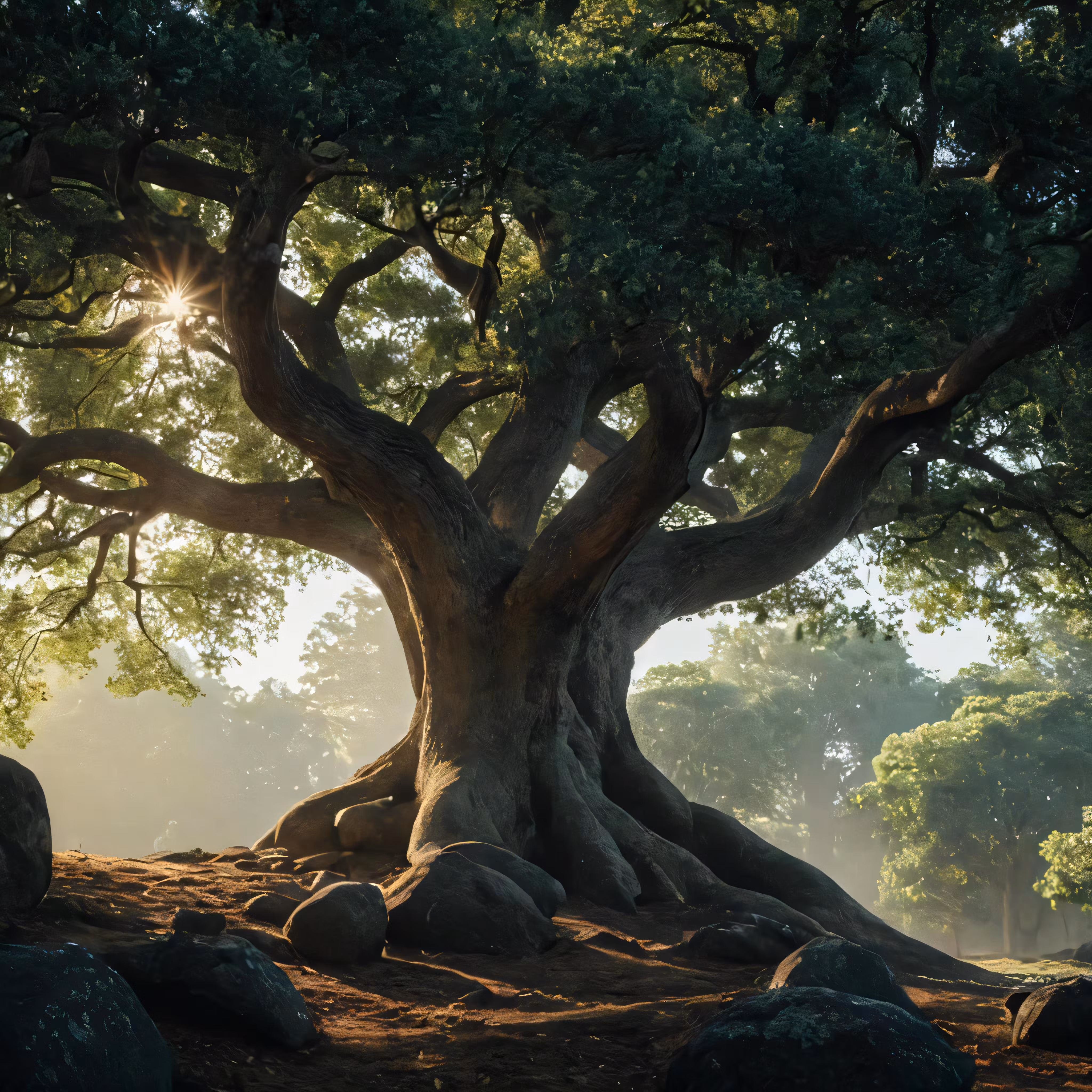 High resolution picture, free to use, an old tree with some rocks in the foreground
