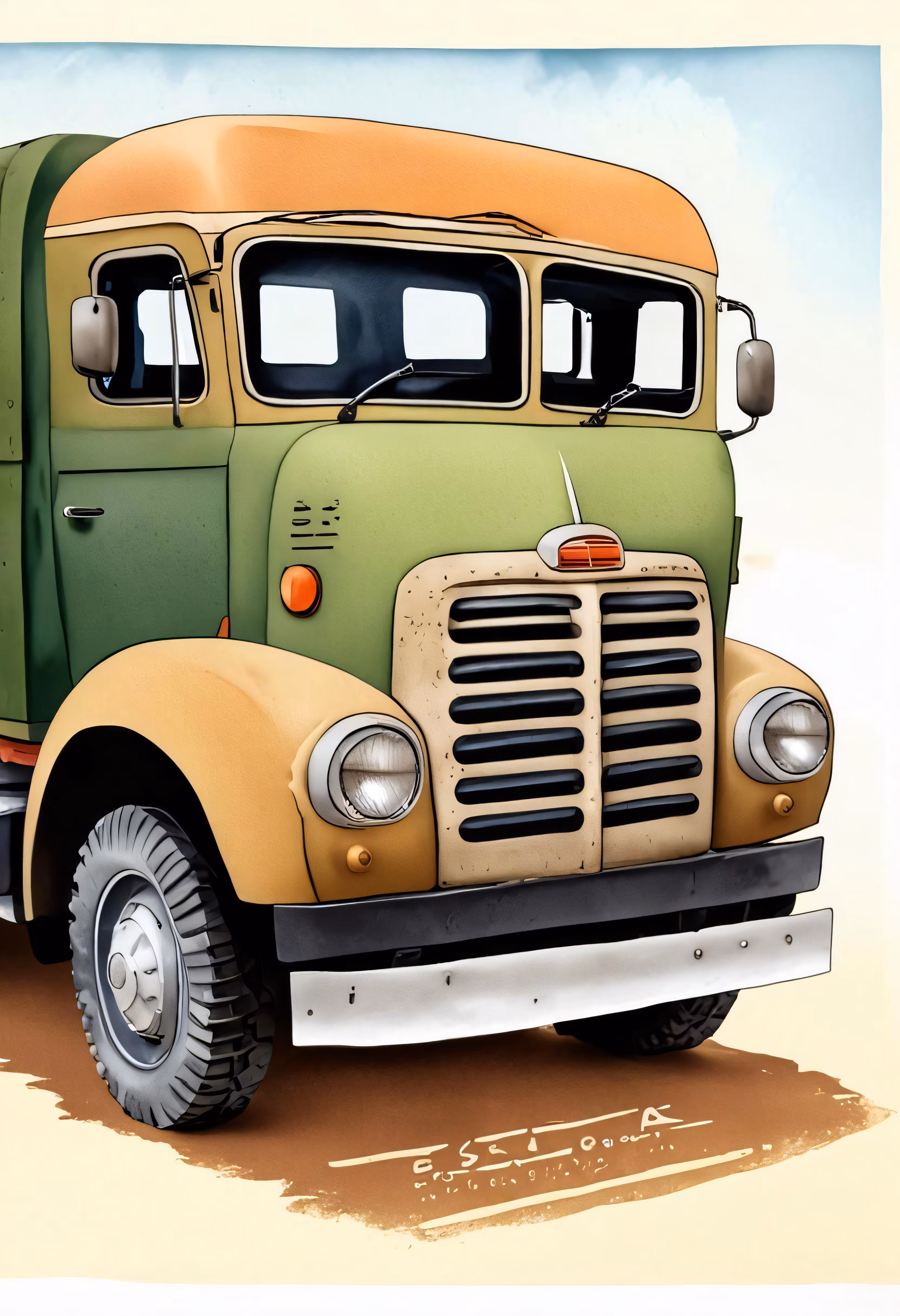 High resolution picture, free to use, an old truck with two green and brown sides is parked