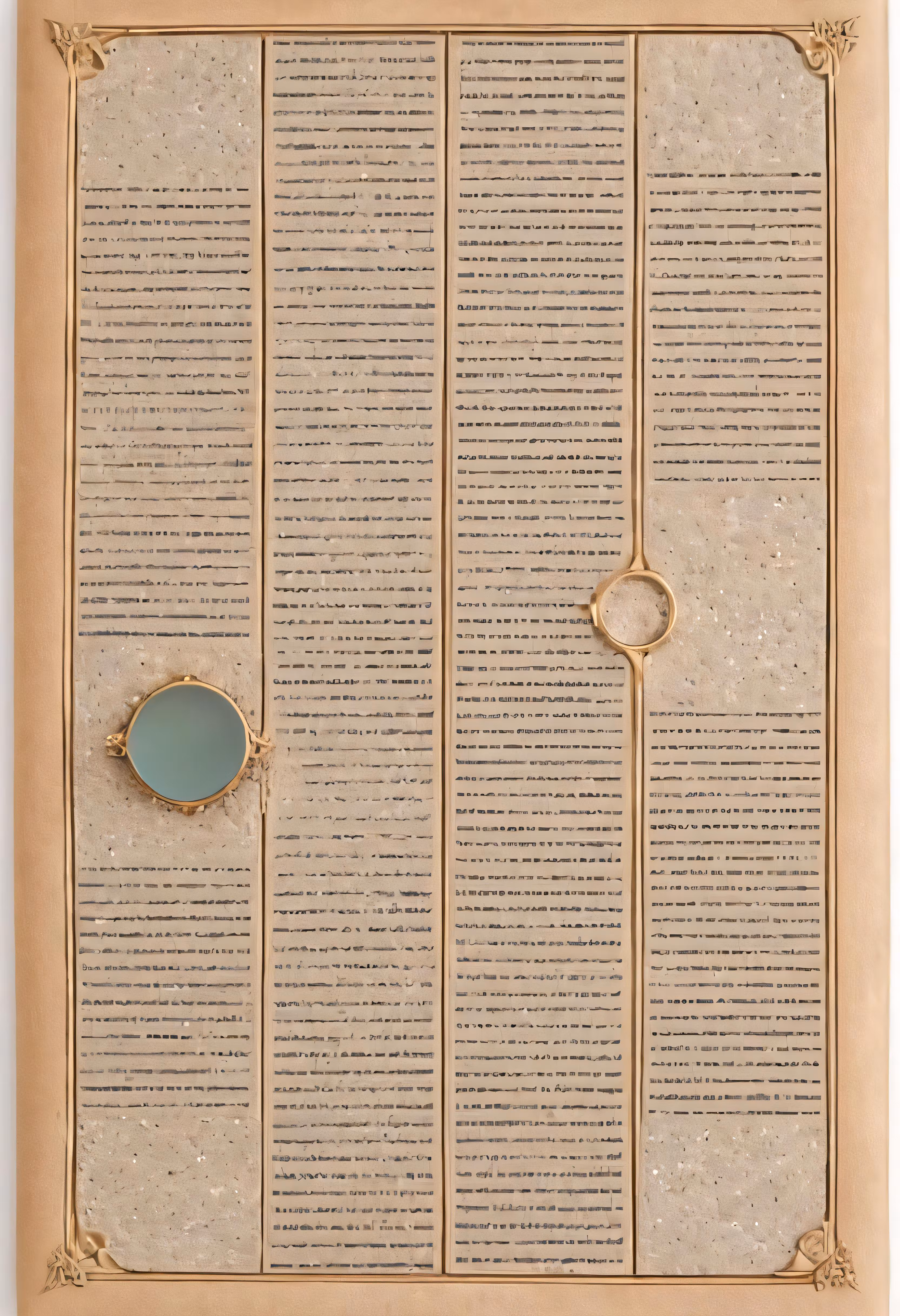 High resolution picture, free to use, an old wall mounted paper with a gold and glass piece