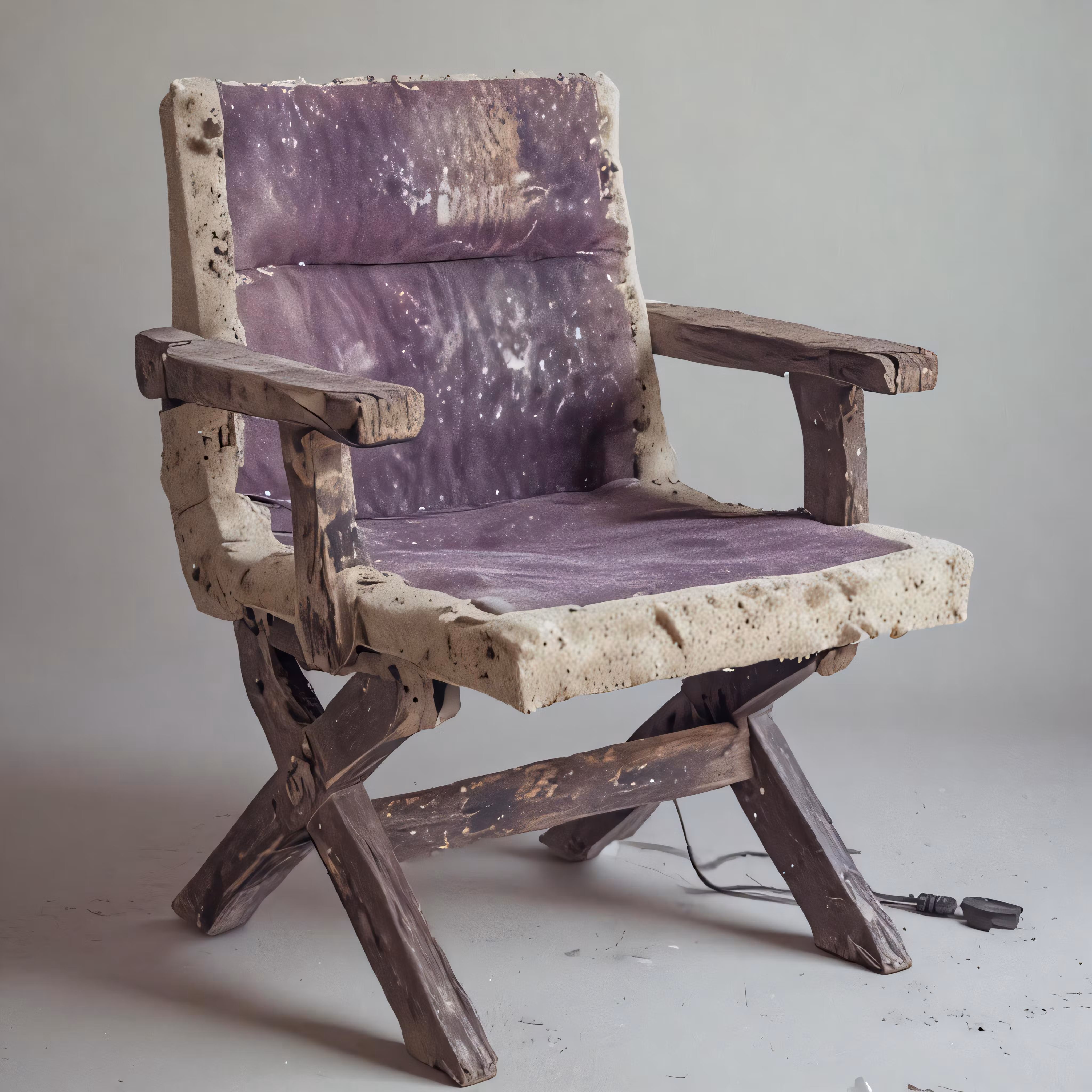 High resolution picture, free to use, an old wooden chair with a purple leather seat