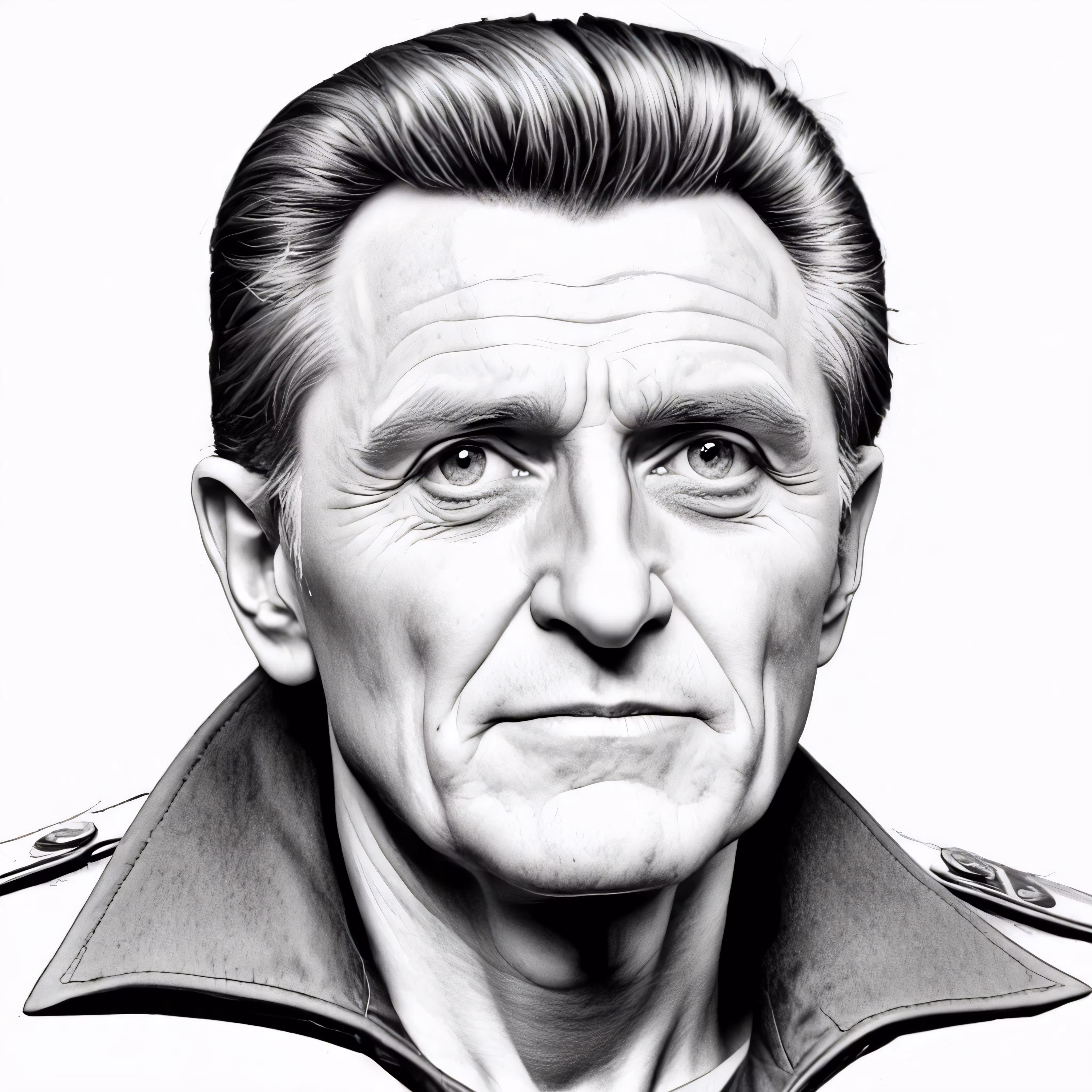 High resolution picture, free to use, an older man wearing jacket, in black and white