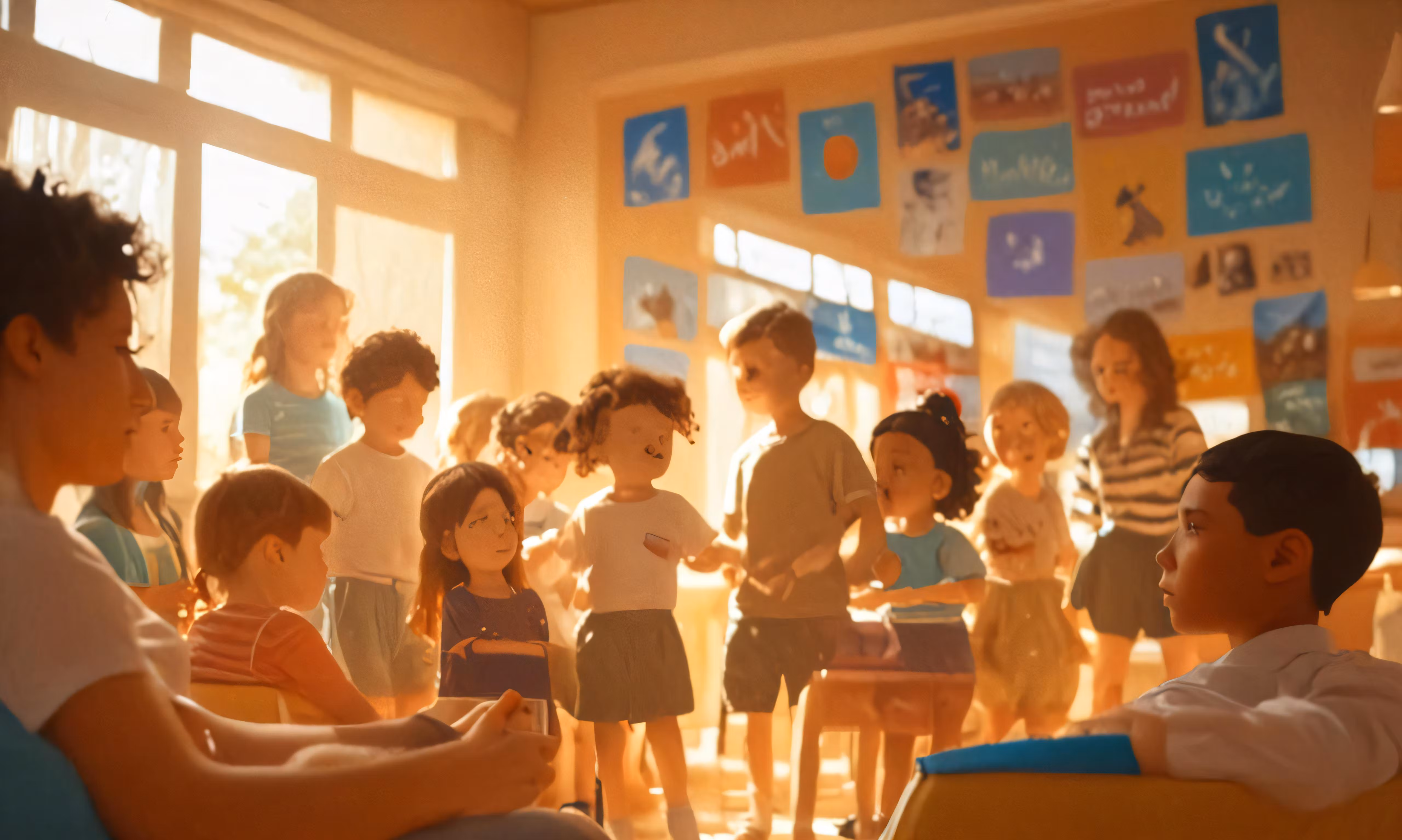 High resolution picture, free to use, an older woman is sitting in front of children