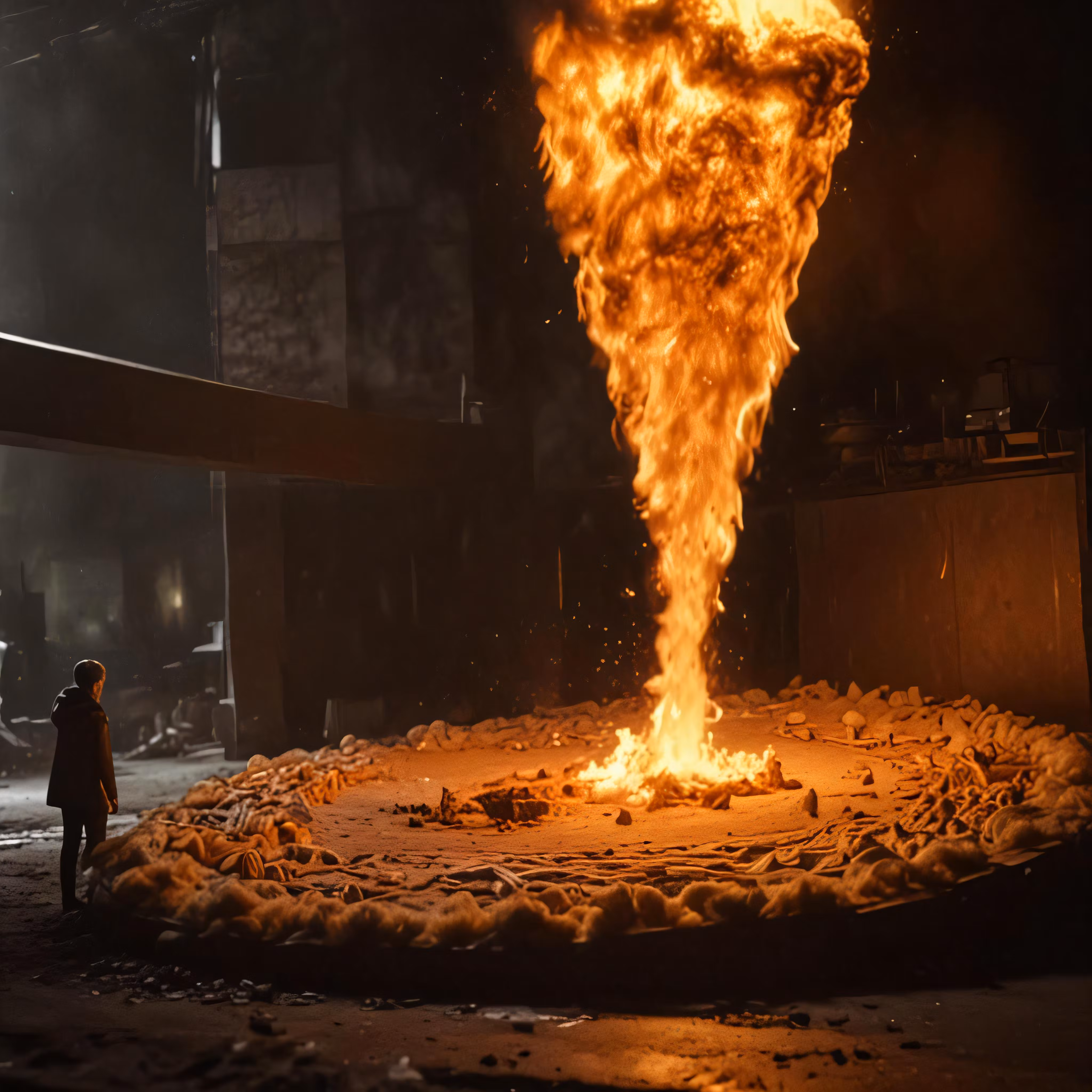 High resolution picture, free to use, an open fire pit that is lit by two people