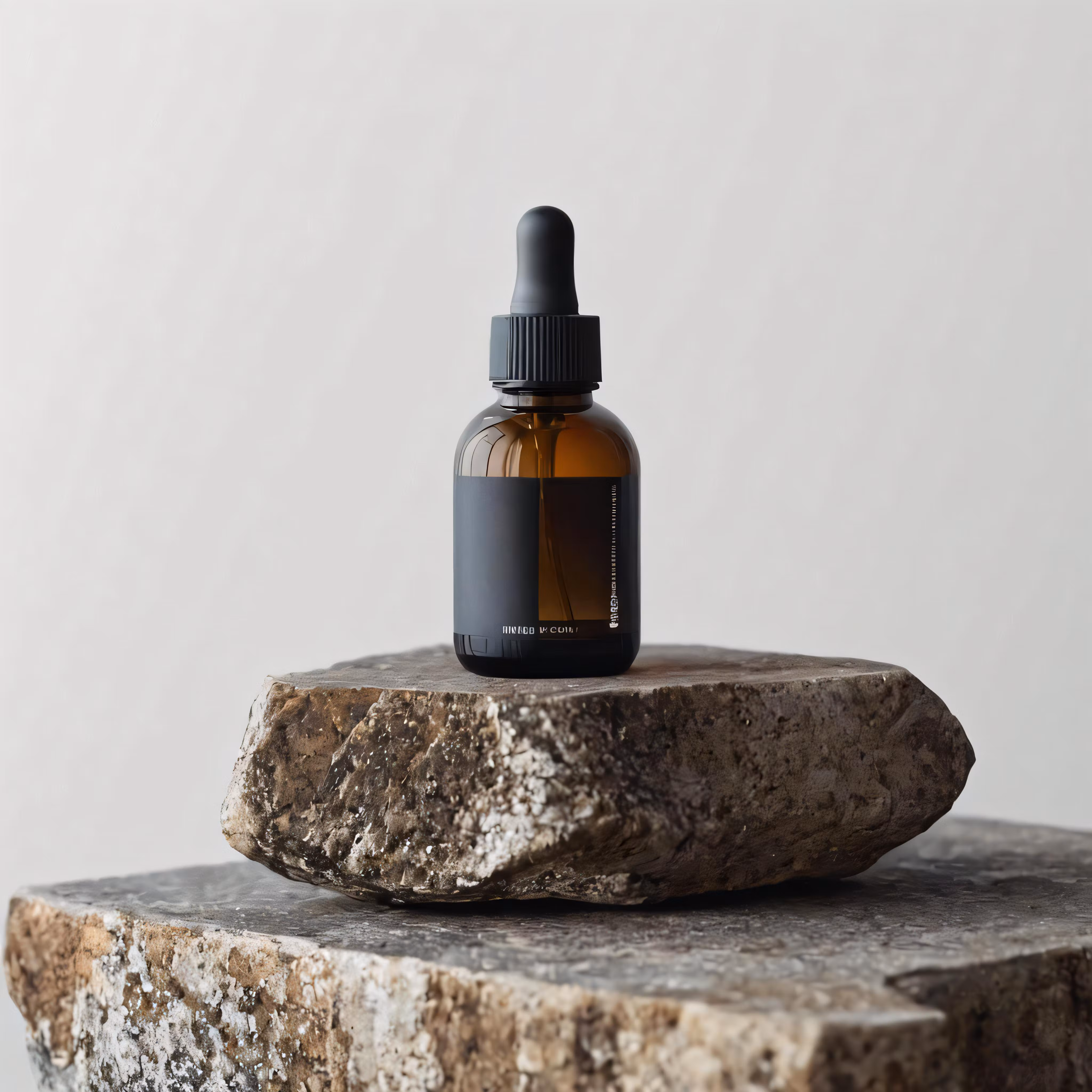High resolution picture, free to use, an open glass bottle sits on top of a stone sculpture