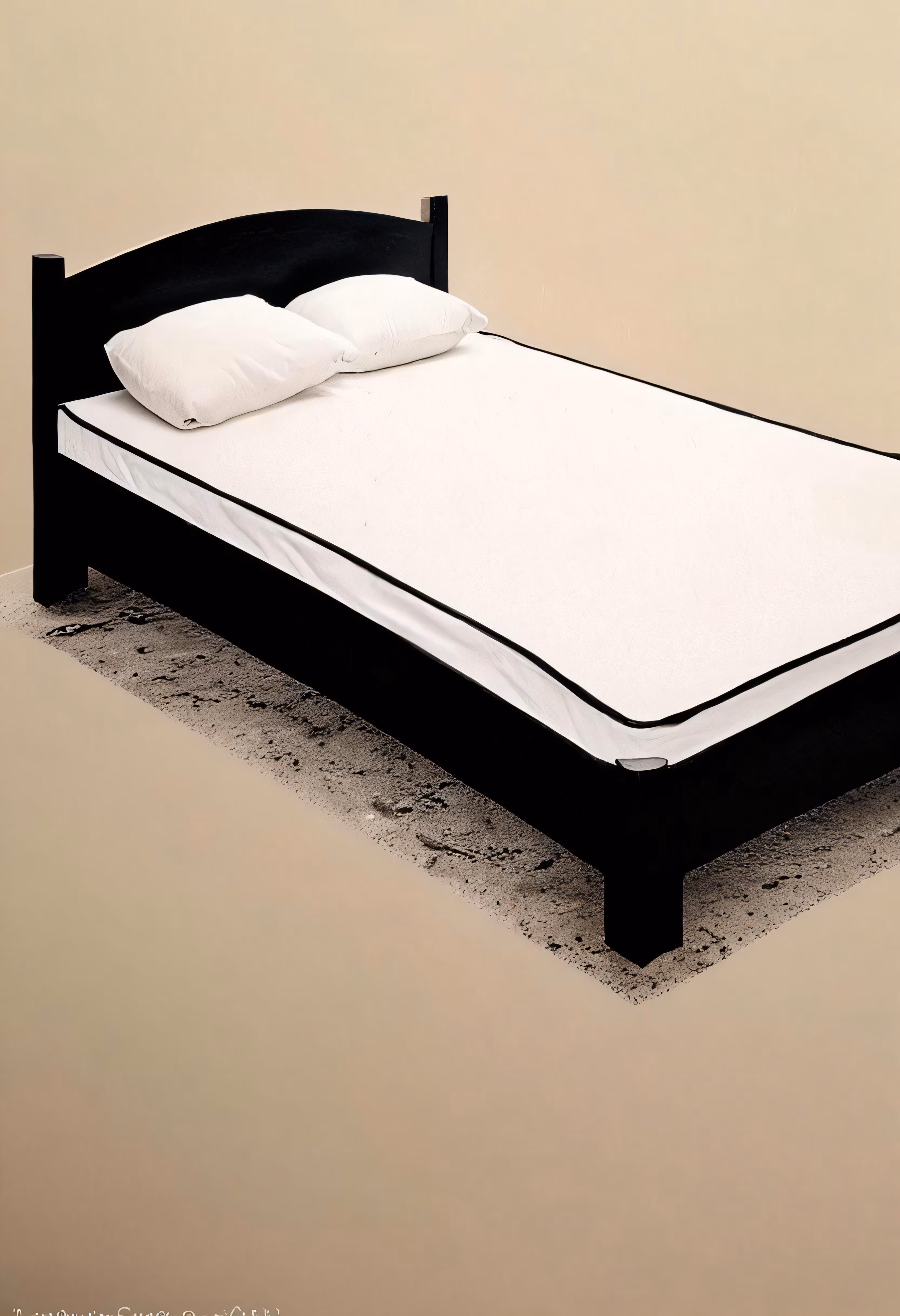 High resolution picture, free to use, an open mattress is on top of a wooden bed frame