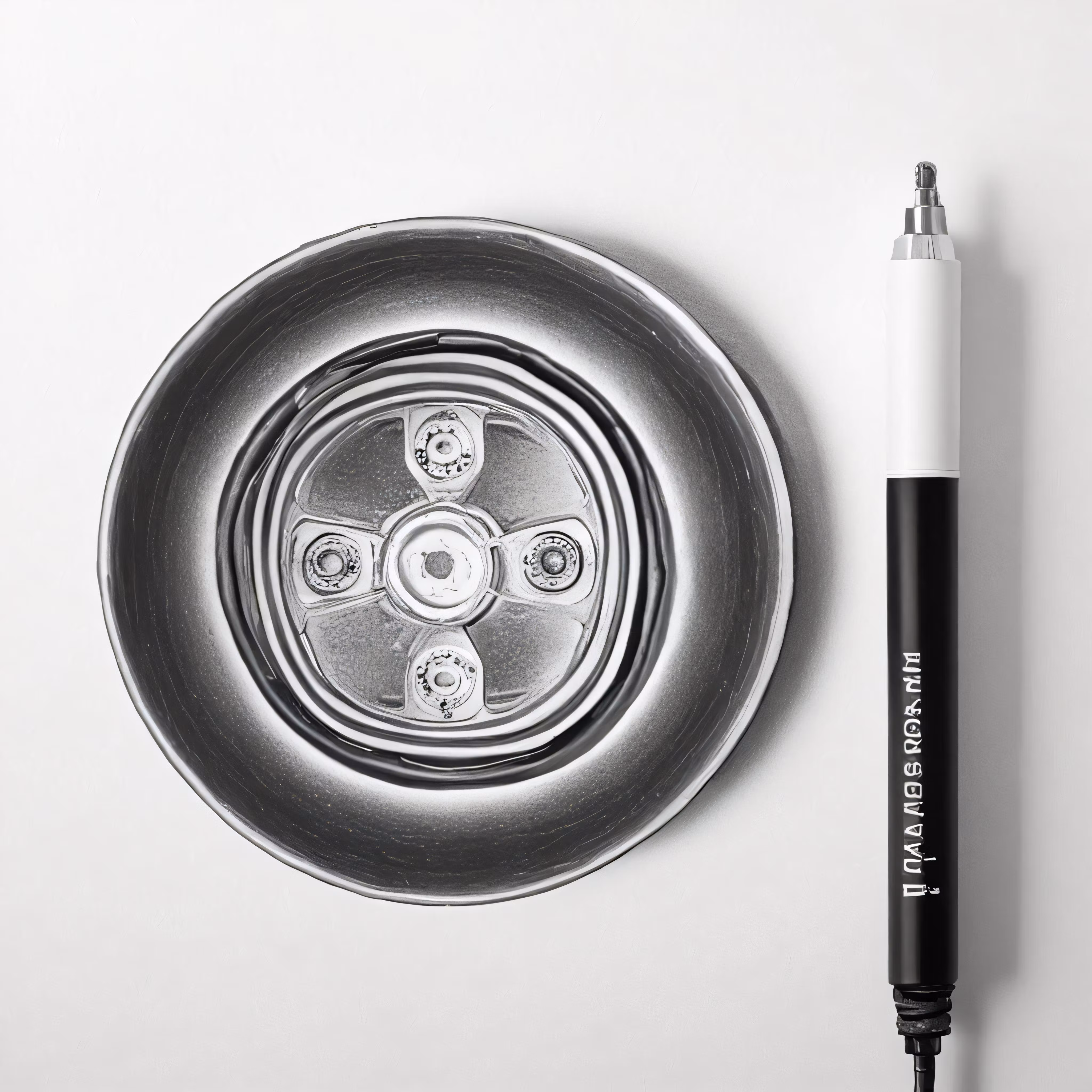 High resolution picture, free to use, an open notebook with a pen and a round object