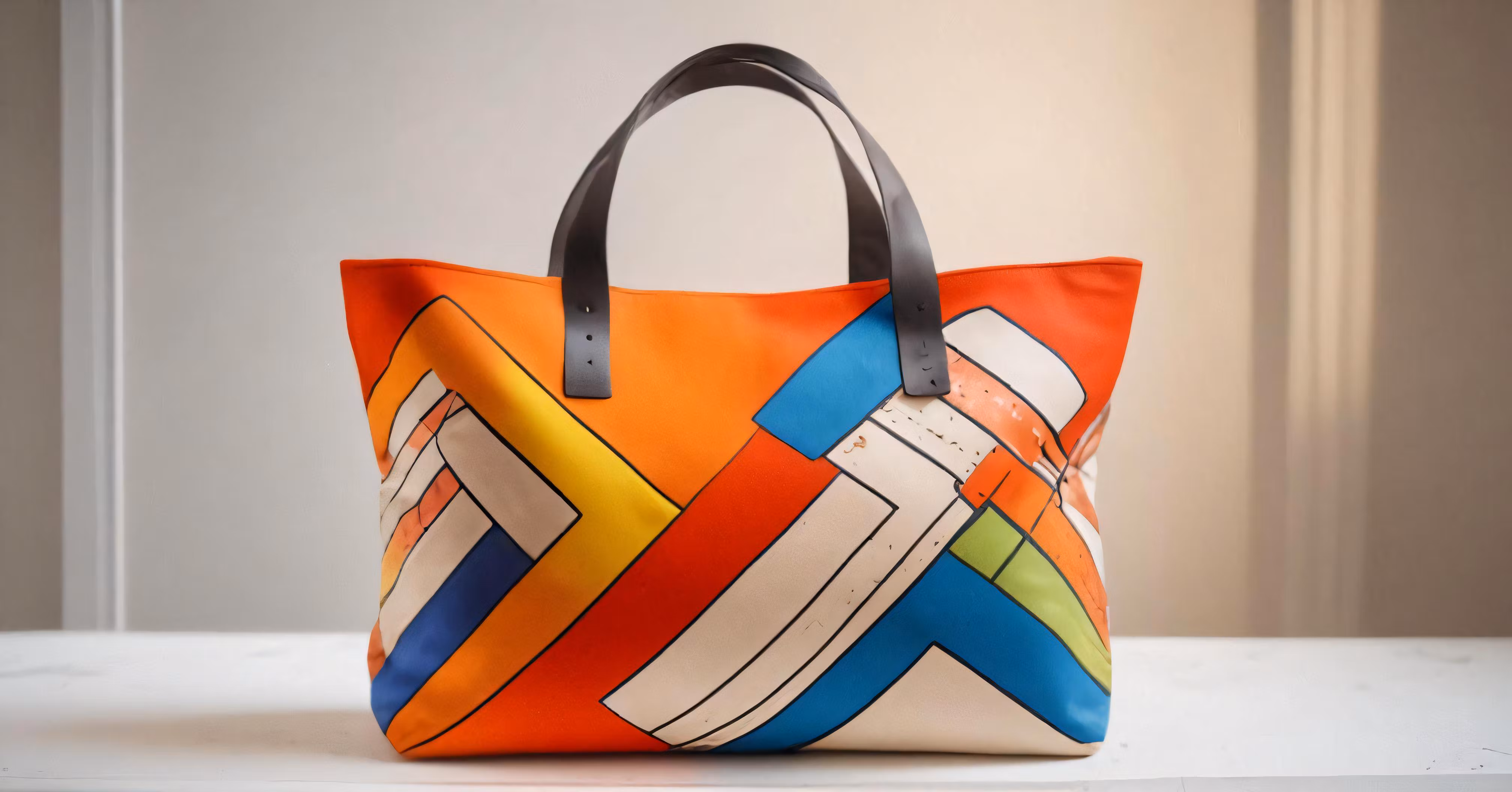 High resolution picture, free to use, an orange, yellow, blue, red and white bag