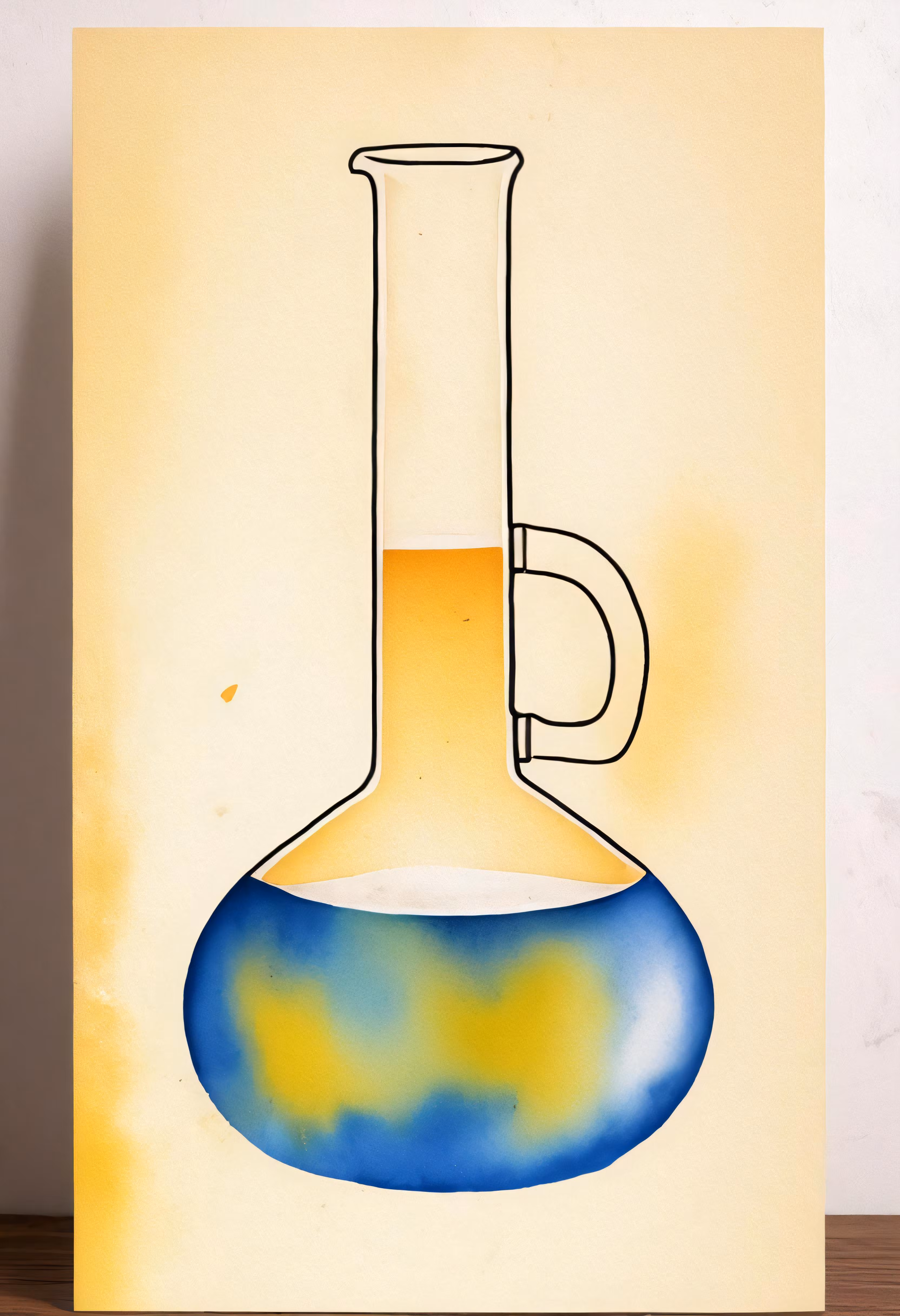 High resolution picture, free to use, an orange and blue abstract piece on a yellow background