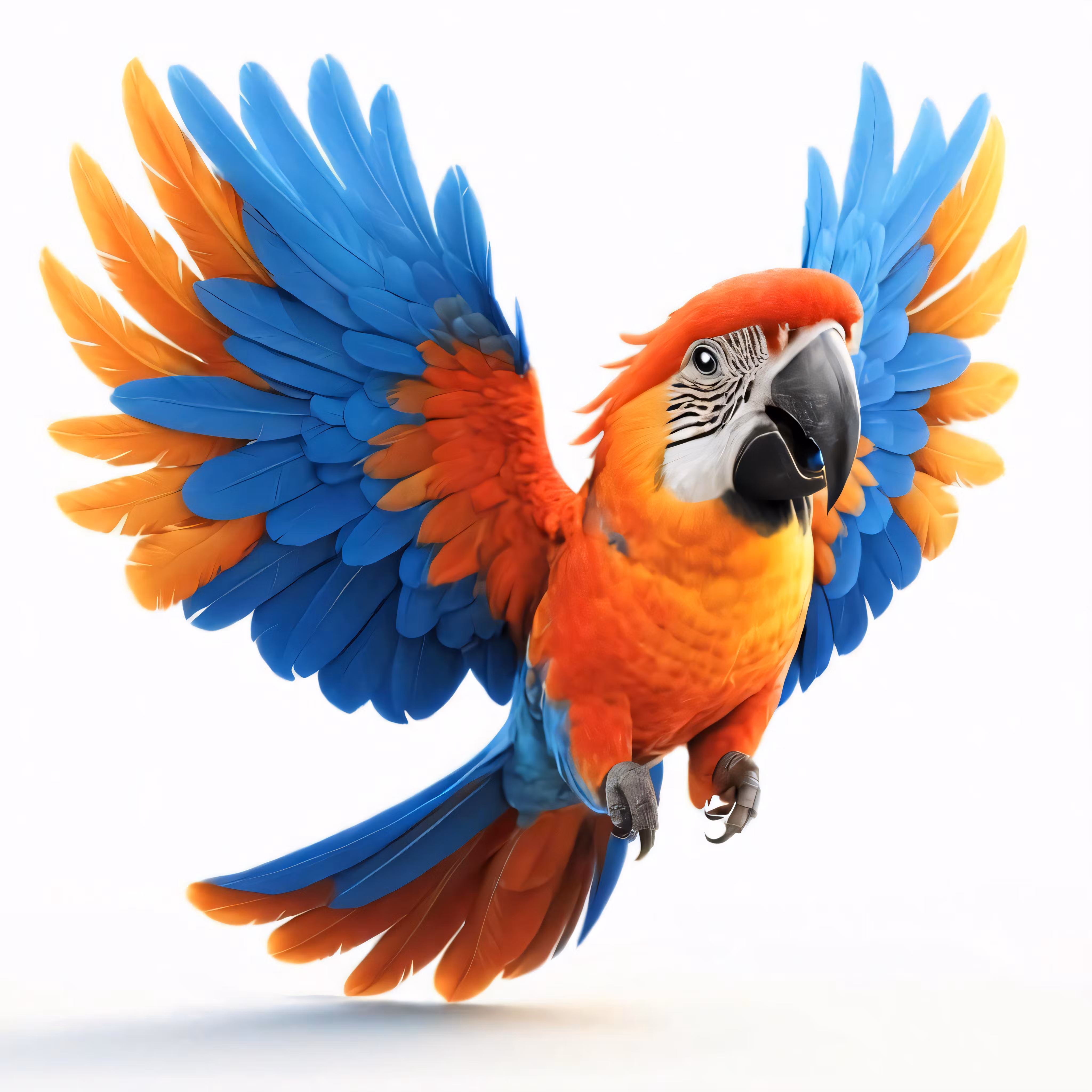 High resolution picture, free to use, an orange and blue bird is flying with its wings spread out