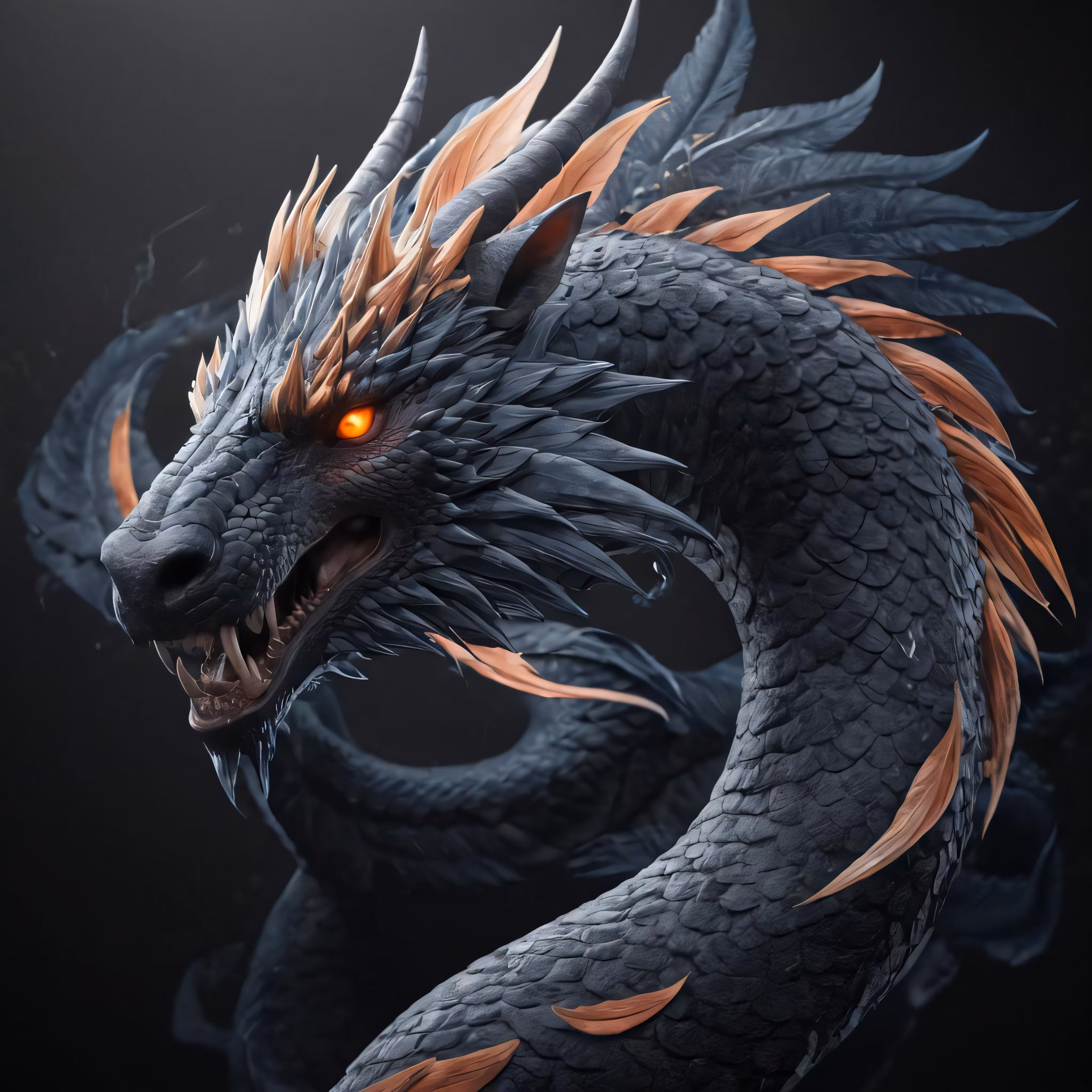 High resolution picture, free to use, an orange and gray dragon with orange eyes