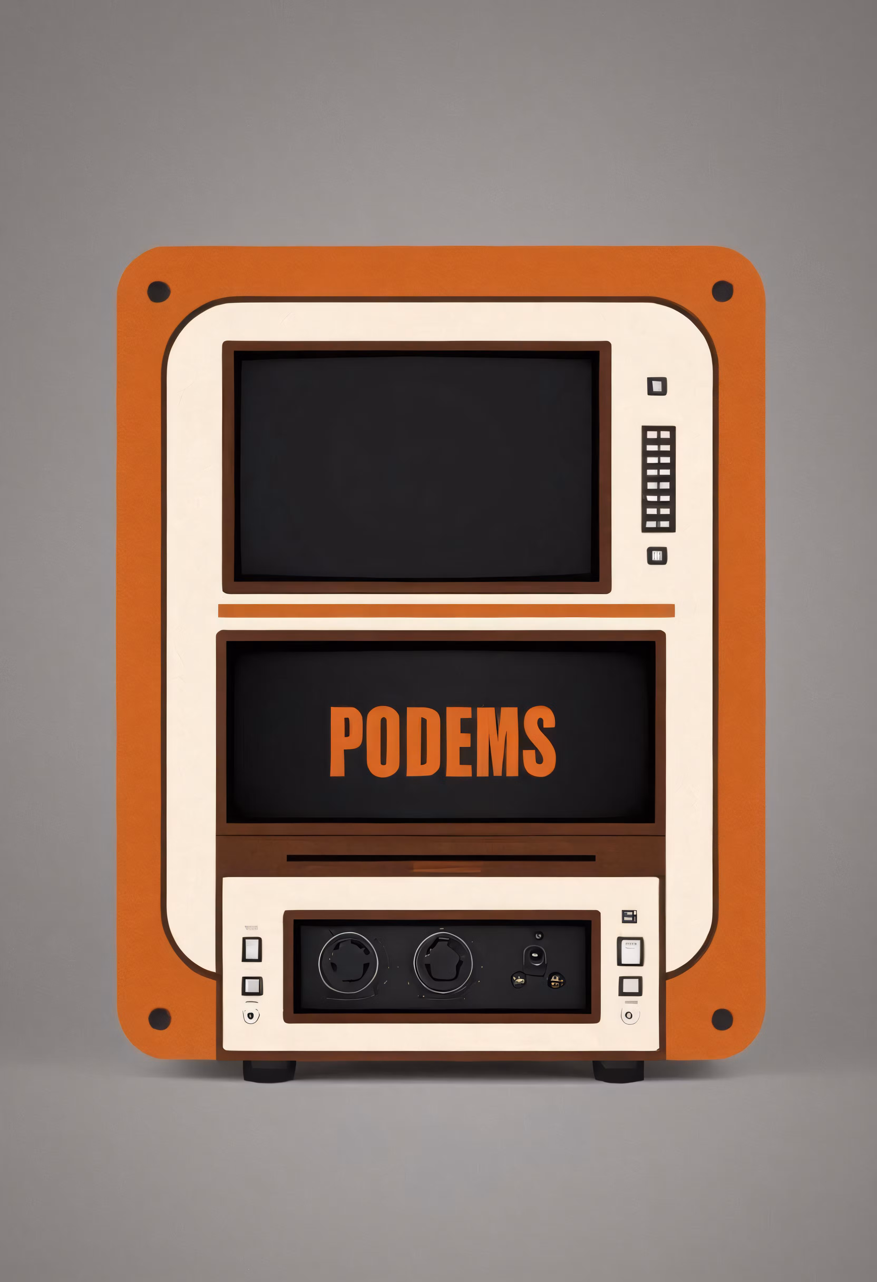 High resolution picture, free to use, an orange and white computer with the words pooms written on it
