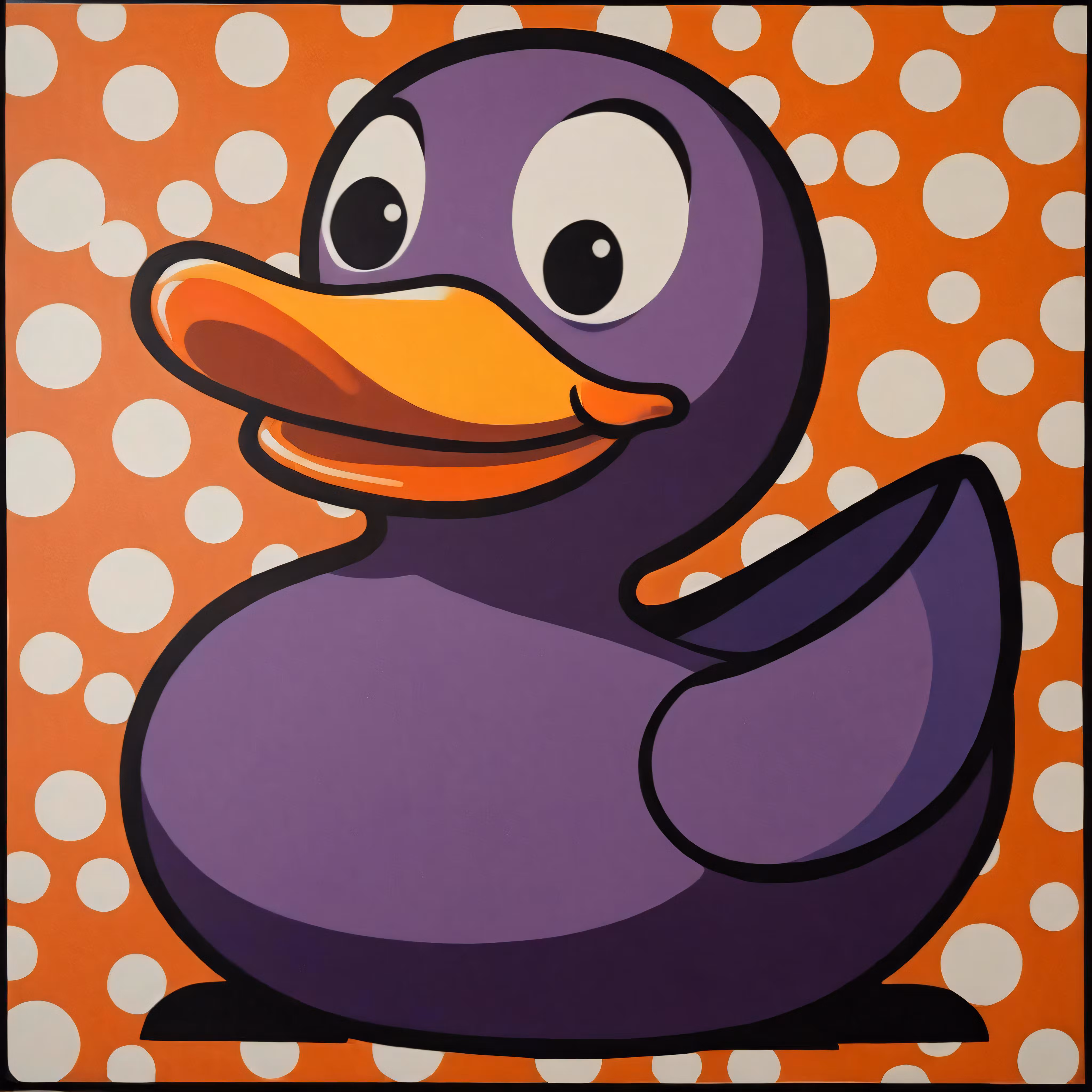 High resolution picture, free to use, an orange and white dot dot pattern with a purple duck
