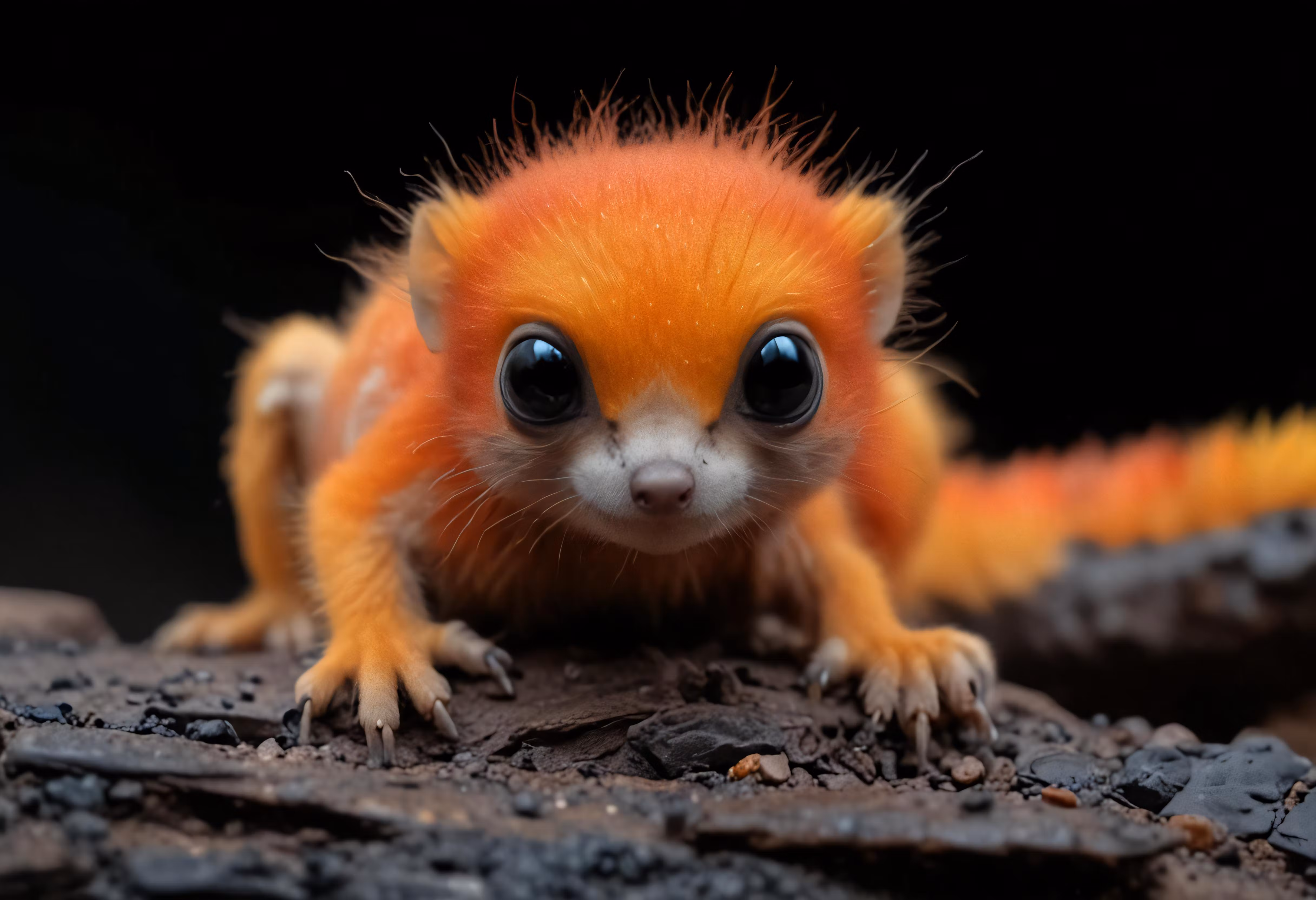 High resolution picture, free to use, an orange and yellow monkey is shown with its head on the ground