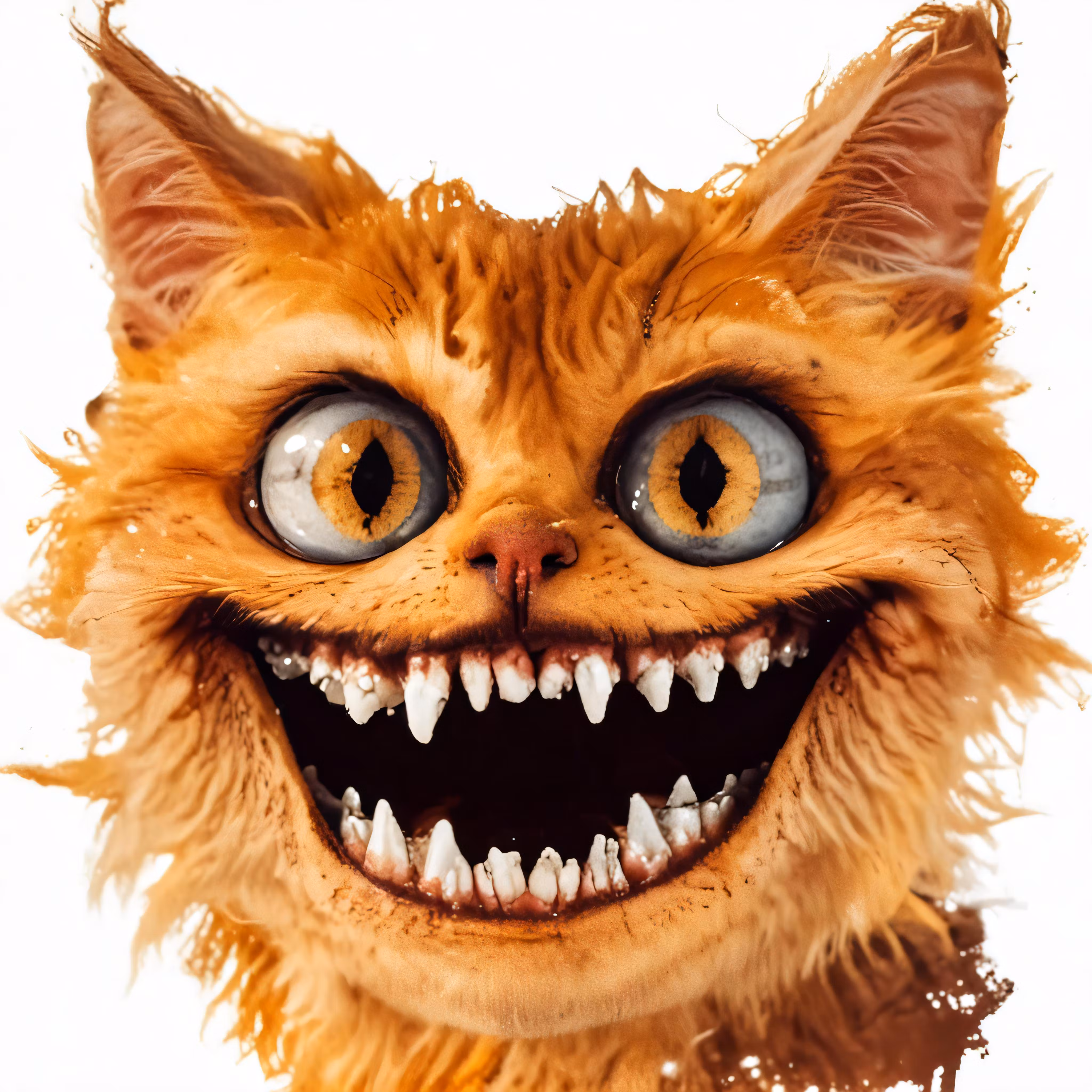 High resolution picture, free to use, an orange cat with large teeth and yellow hair