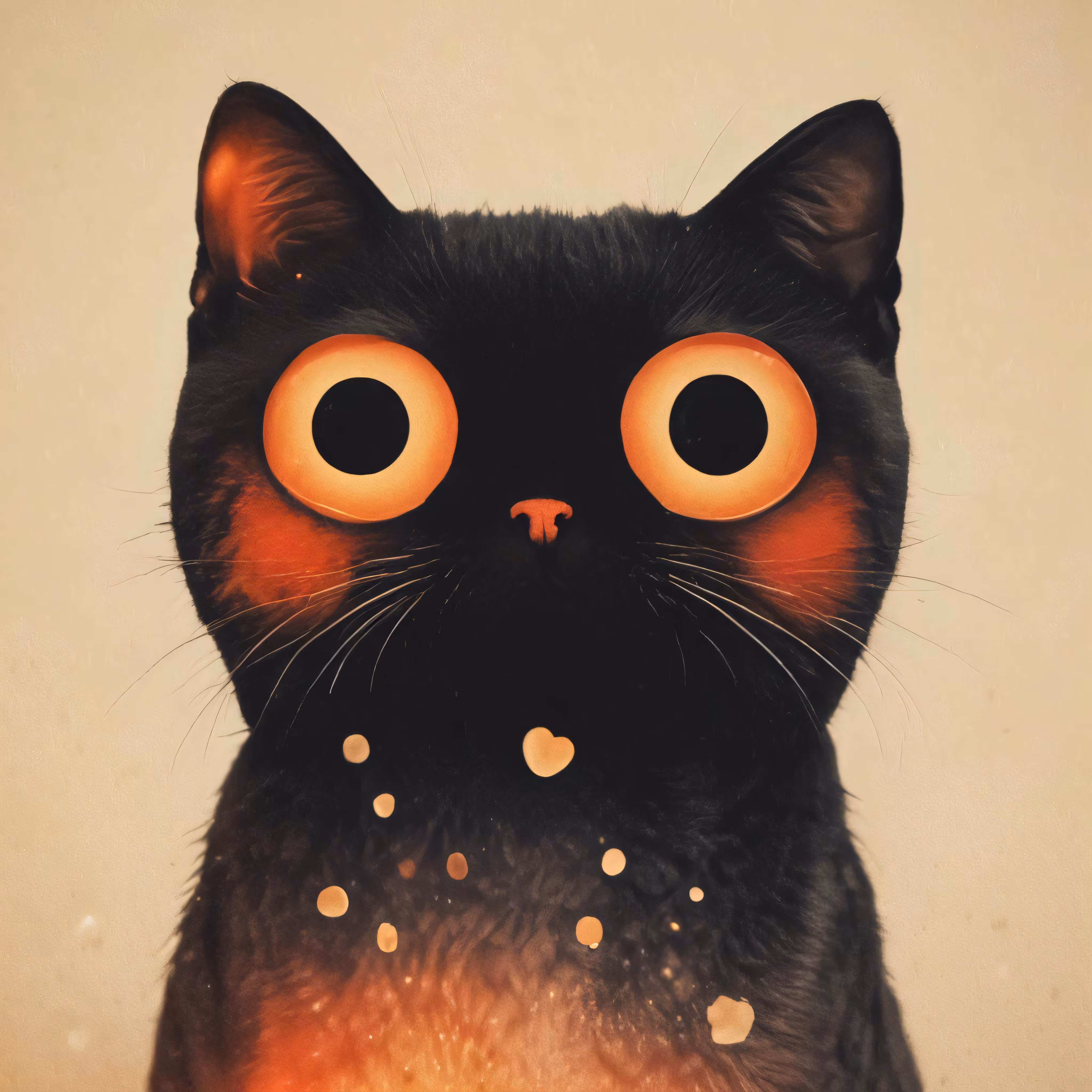 High resolution picture, free to use, an orange eyed black cat with dots on his chest