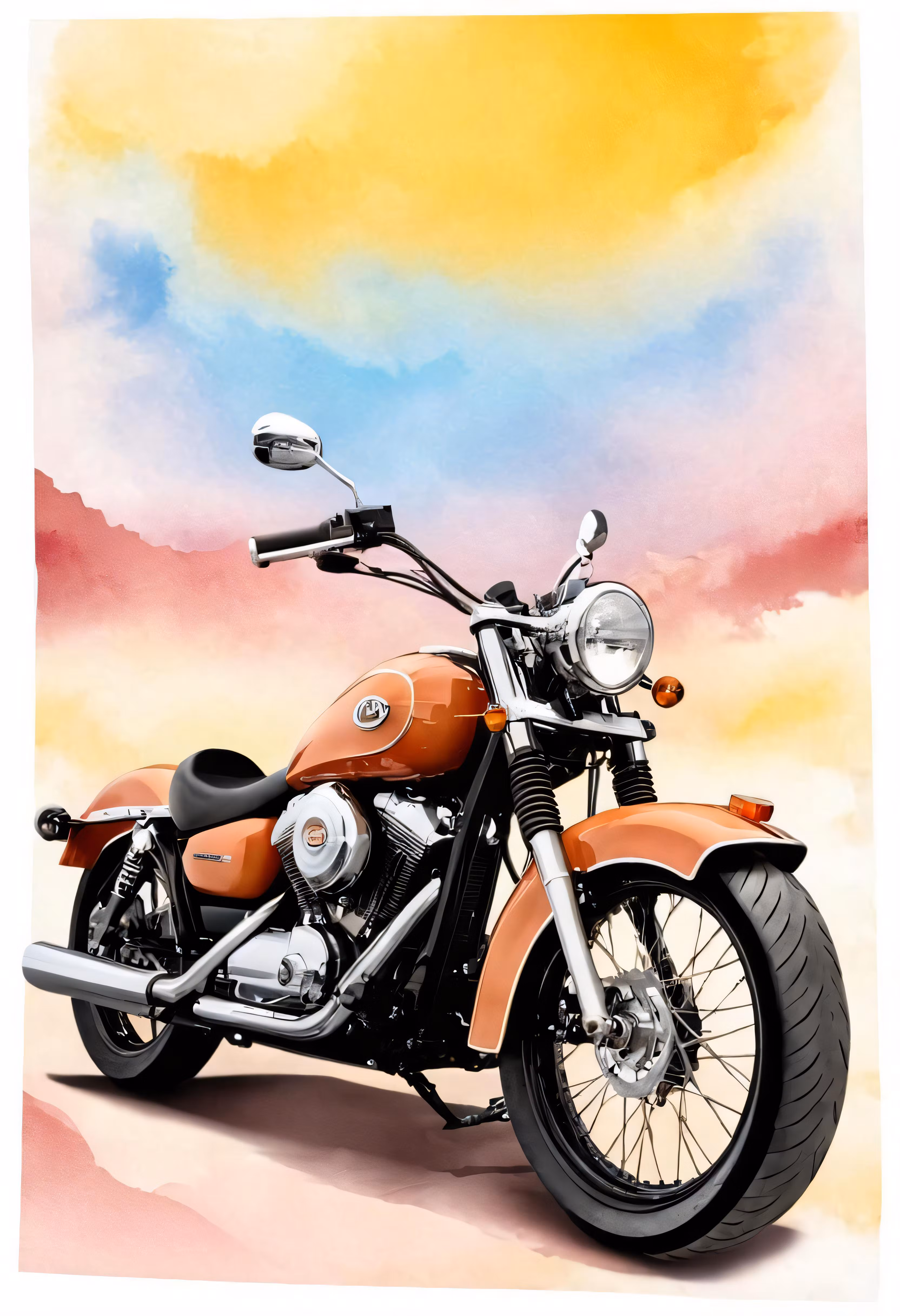 High resolution picture, free to use, an orange motorcycle parked on a dirt road