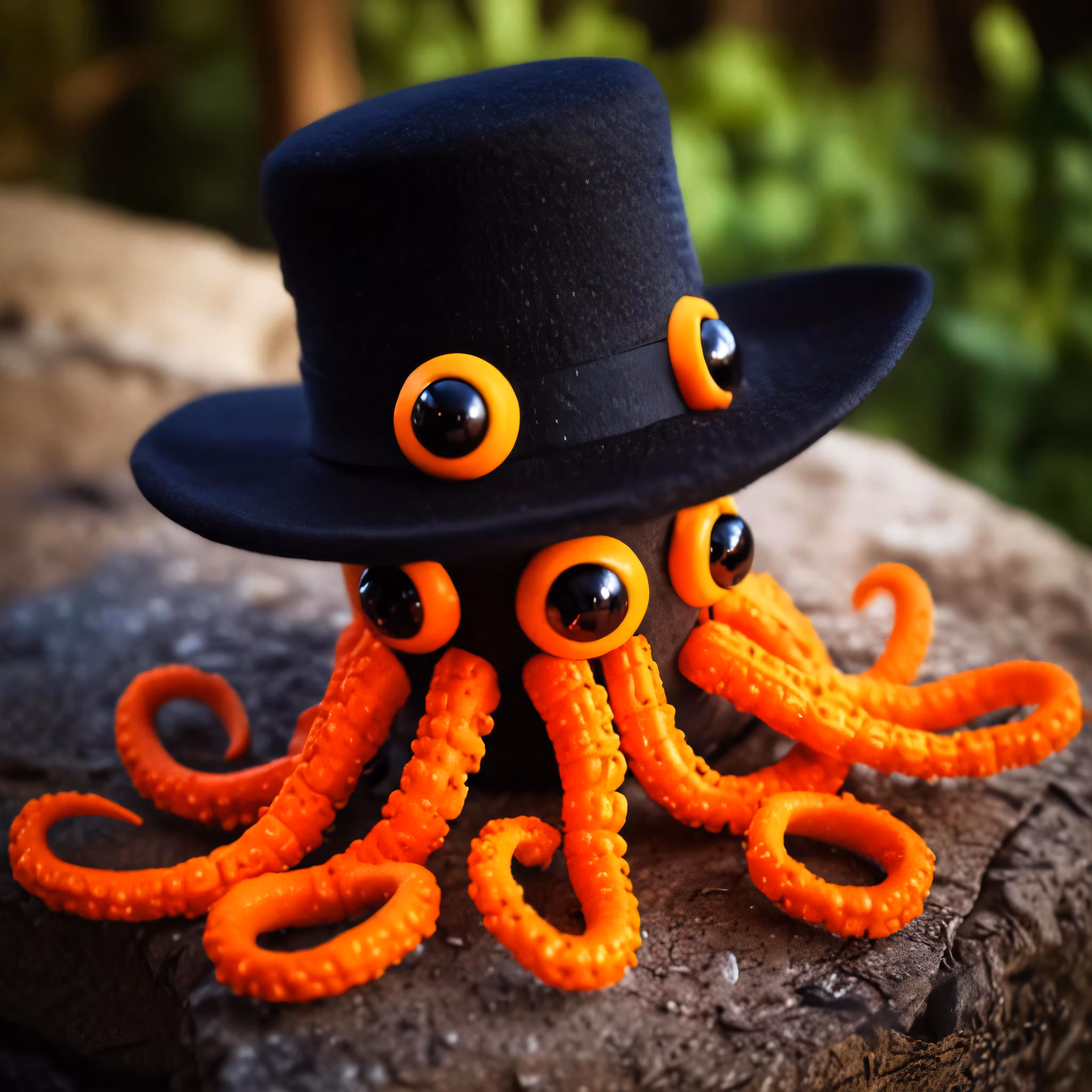 High resolution picture, free to use, an orange octopus octopus wearing a hat on a rock
